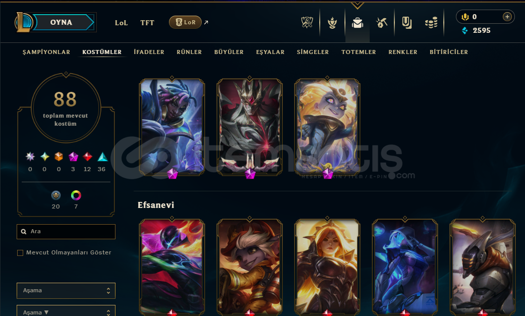 VALO + LOL HESABI TÜM İÇERİKLERİ RESİMLERE EKLEDİM HEMEN TESLİM EDEBİLİRİM İLK SAHİBİYİM