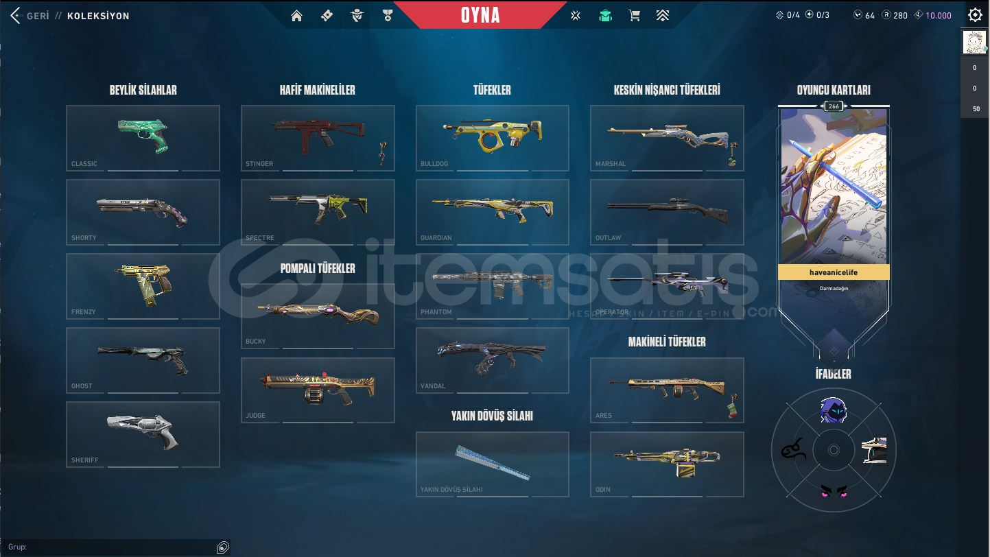 Hesap maksimum diamond 3 gördü Şuan rank plat 2 elo hell değil4 yıllık bir hesaptırE mail değişilebilir Skinler sığmadığı için ayriyeten bulunan skinler-Asil Vandal-Yağmacı Vandal-Zaman ötesi Vandal-Seri Tetik Sheriff -Özel Hareket Phantom-Radyant Krizi PhantomVe bence kötü sayılmayacak Battle Pass bıçakları vardır diğer silah skinleride öyle