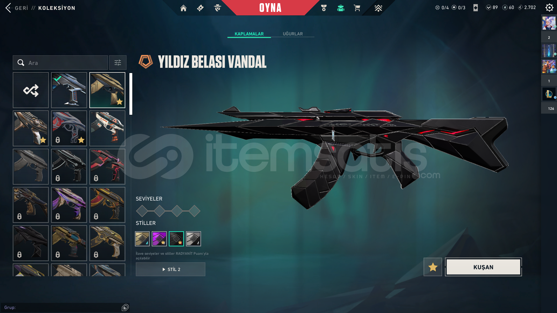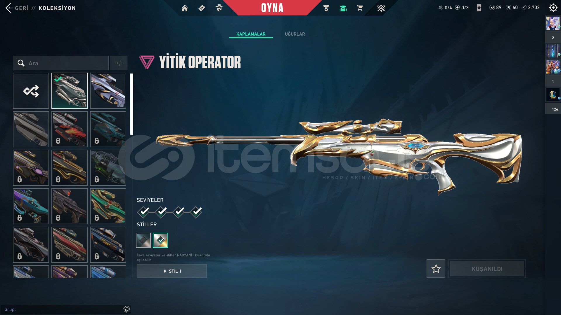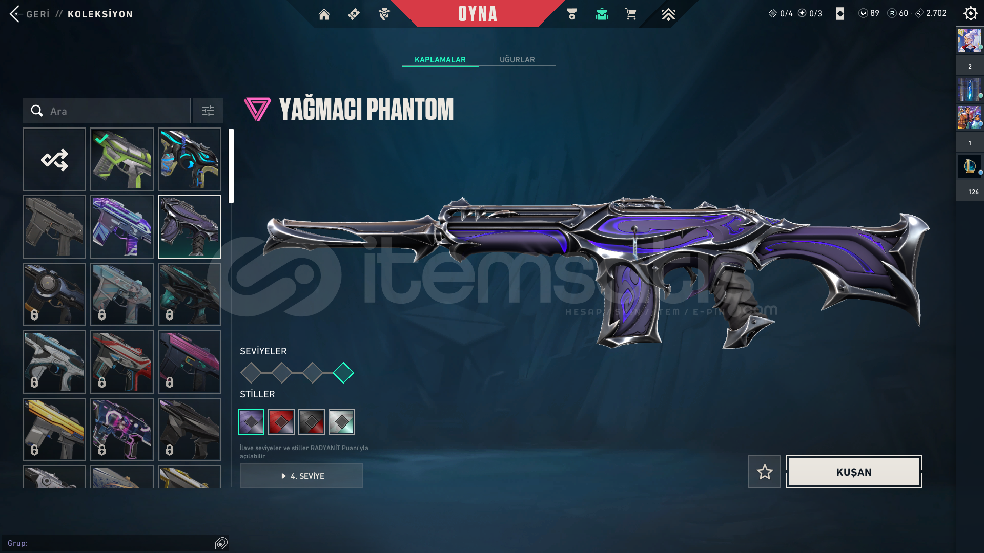 Oyunu bıraktım acil para lazım o yüzden satıyorum.Hesapta Kuronomi,Yıldız Belası,Zamanın Ötesi vandal var rgx ve yağmacı phantom var İyon sheriff ve yitik operatör var.Gece pazarında oni phantomu var.Eposta değişimlidir.Mail değiştirmek zorunlu.