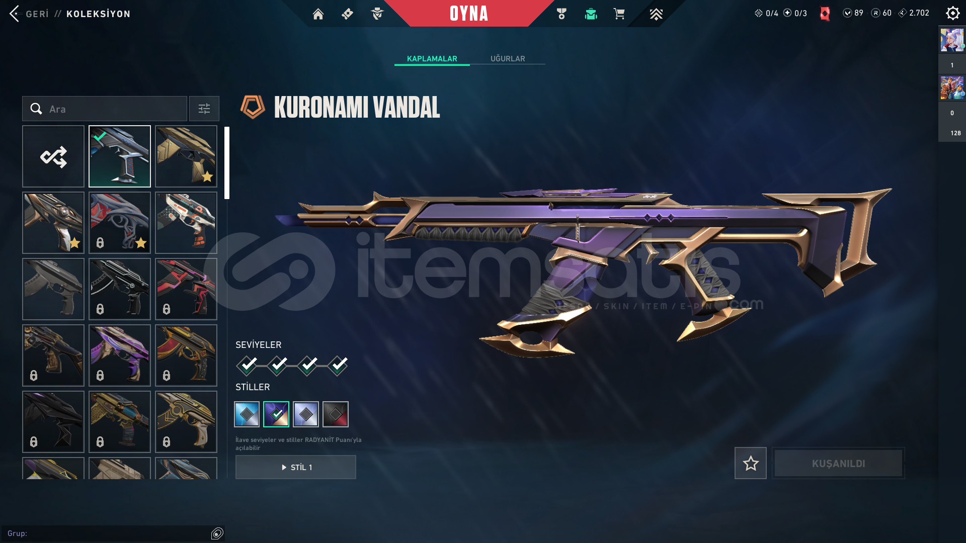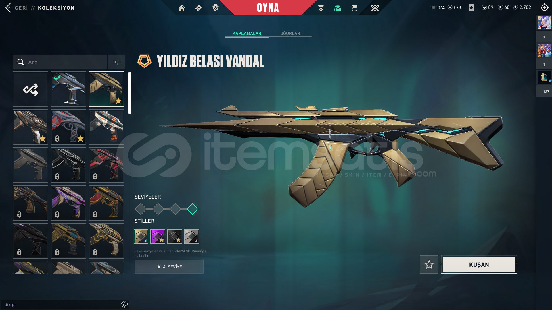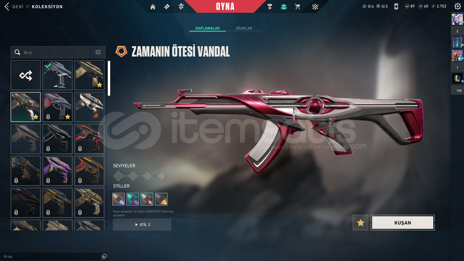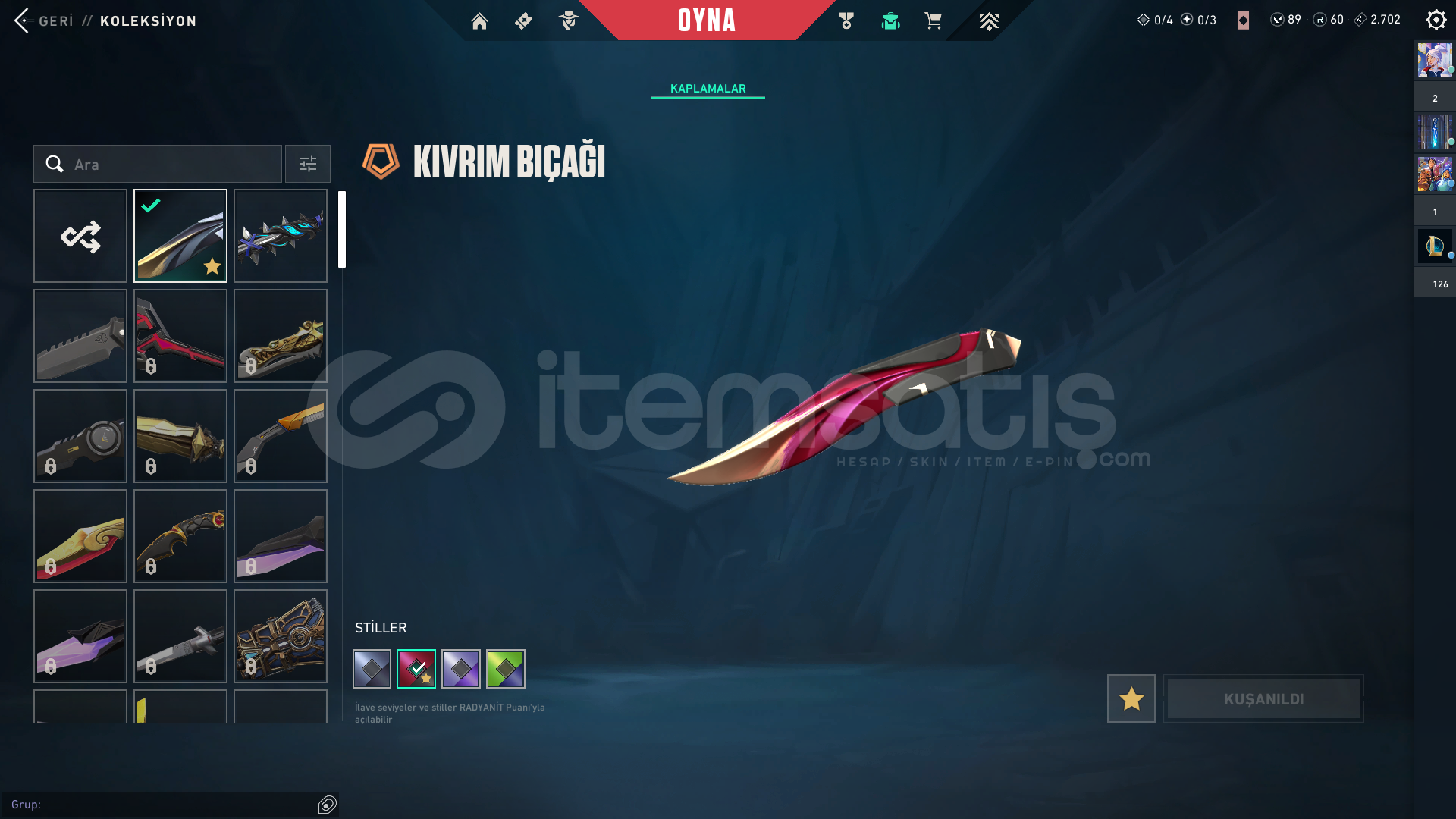 Oyunu bıraktım acil para lazım o yüzden satıyorum.Hesapta Kuronomi,Yıldız Belası,Zamanın Ötesi vandal var rgx ve yağmacı phantom var İyon sheriff ve yitik operatör var.Gece pazarında oni phantomu var.Eposta değişimlidir.Mail değiştirmek zorunlu.