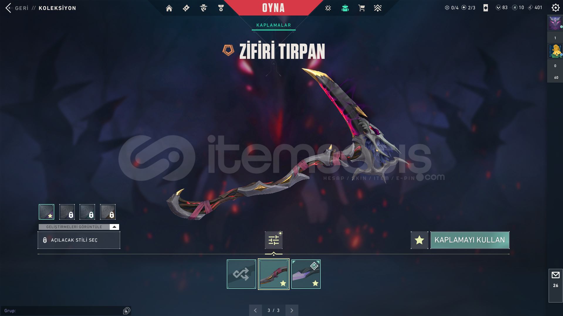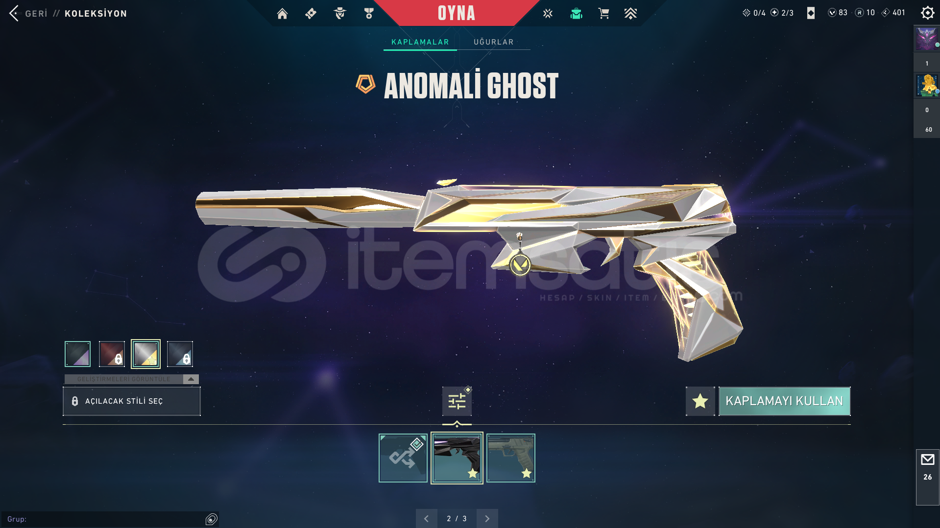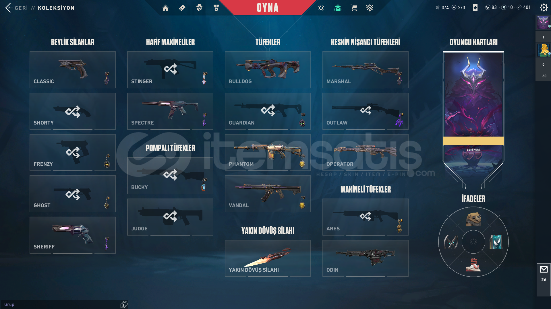 BAN GEÇMİŞİ OLMAYAN TEMİZ HESAP (12550 TL YATIRILMIŞTIR)ACİL SATILIK, KESİN ALICILAR MESAJ ATSIN FİYATTA İNDİRİM YAPABİLİRİMHesap göründüğü gibi fazlası var eksiği yok.Anomali set ve Zifir set vardır. 2 defa battle pass açılmış olup bitirilmiştir. Yeni sezon battle pass açılmadı.➦ Classic ; Zifir Classic➦ Ghost ; Özel ...