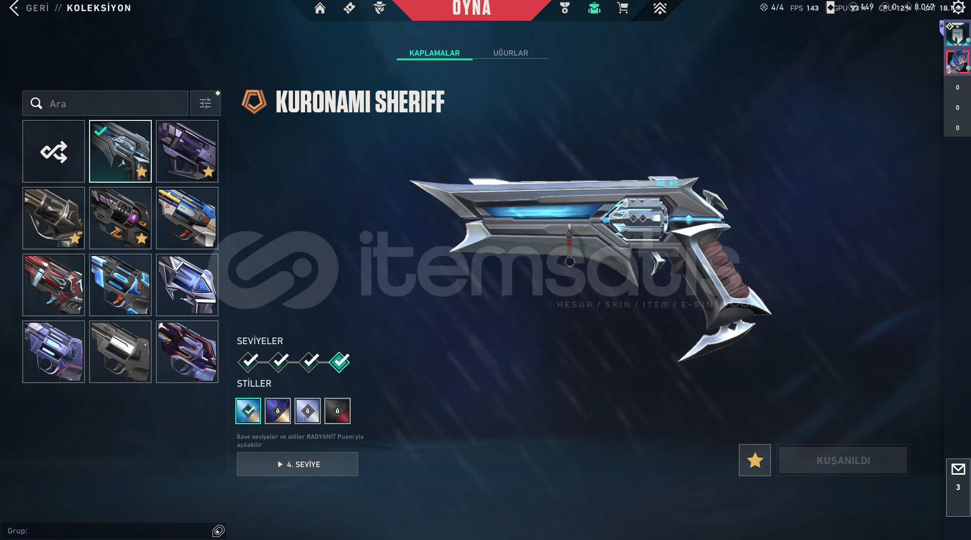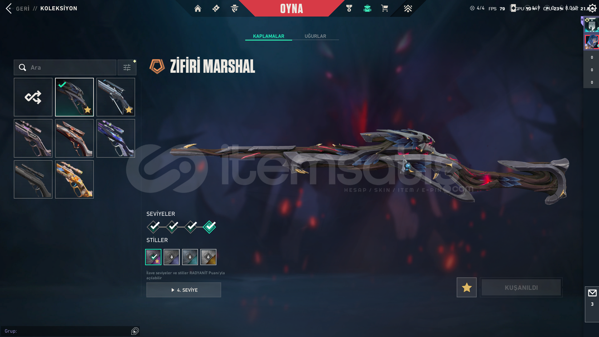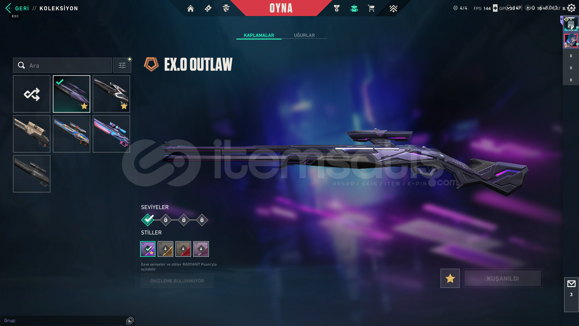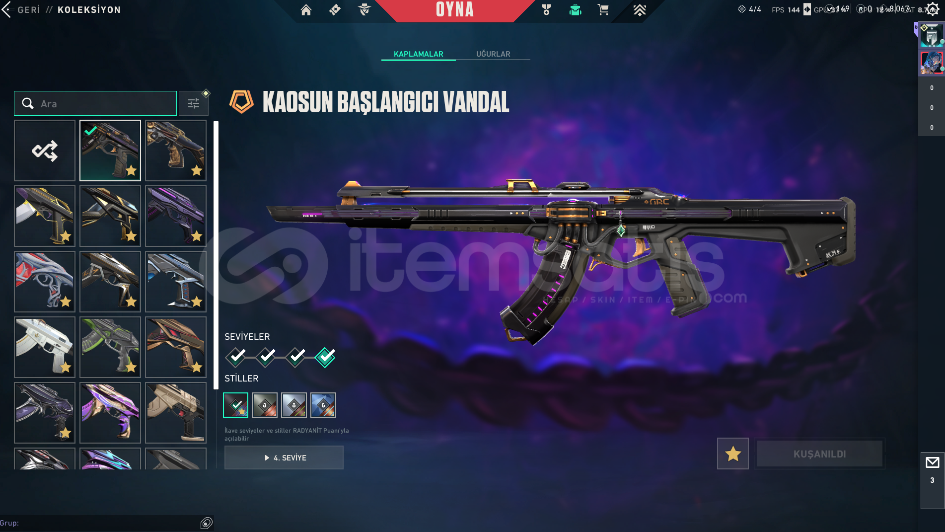 VANDALKAOSUN BAŞLANGICIAEMONDIR ASILCHAMPIONS 2025EXOGAIA'NIN İNTİKAMIIŞIK MUHAFIZLARIKRONOMINEPTUNRGXULU PENÇE YAĞMACI 4 ADET BATTLEPASS SKIN_________________PHANTOMÖZEL HAREKAT KAOUSUN BASLANGICI ZIFIRI 7 ADET BATTLEPASS SKIN__________________SHERIFFKRONOMIEXOIŞIK MUHAFIZLARIKAOUSUN BASLANGICI6 ADET BATTLEPASS SKIN___________________OPERATORCESUR YUREKKAOUSUN BASLANGICISIRÇİÇEĞİYAĞMACI5 ADET BA...