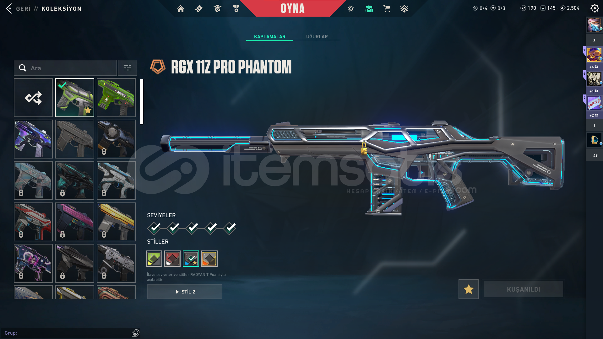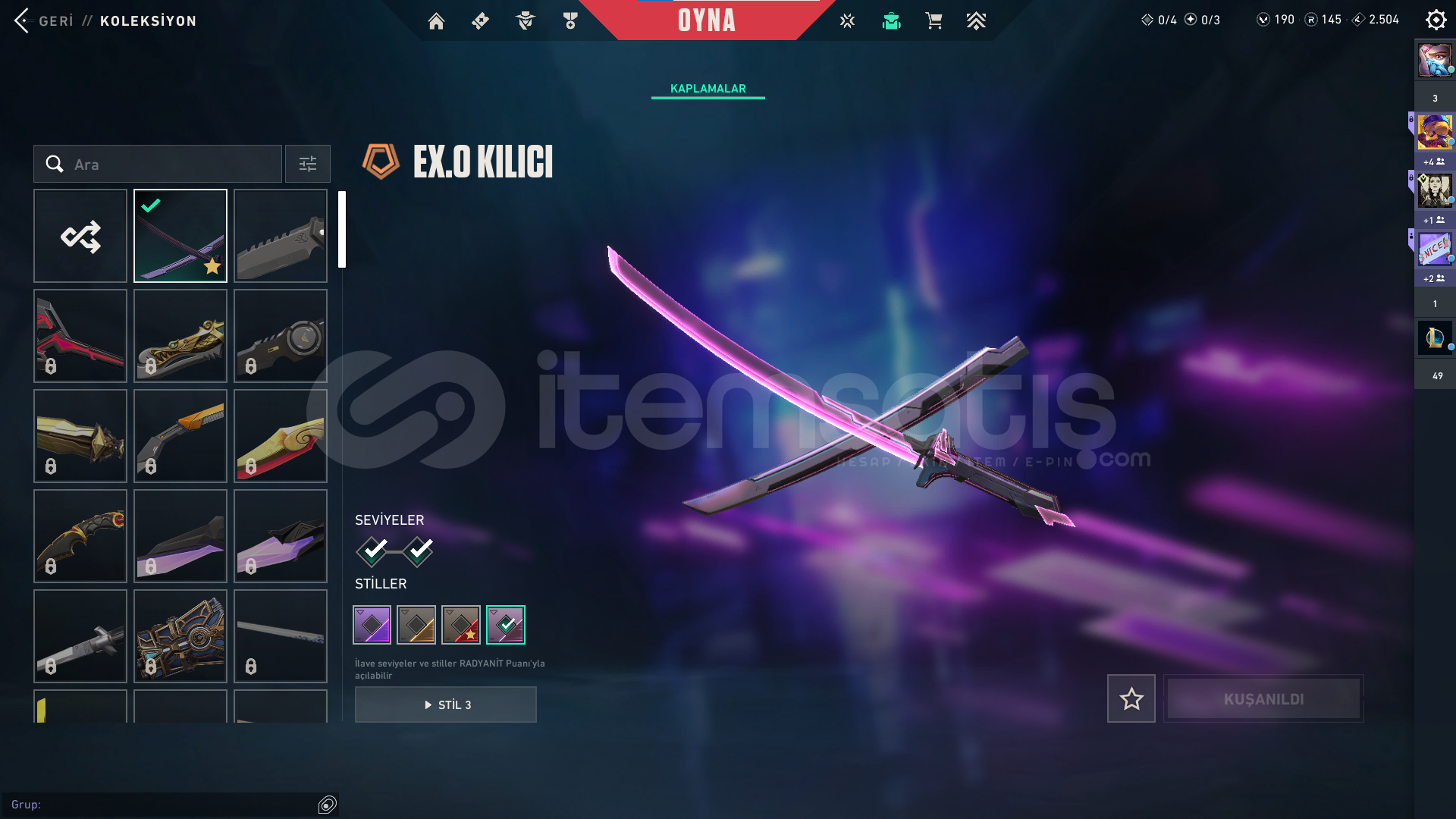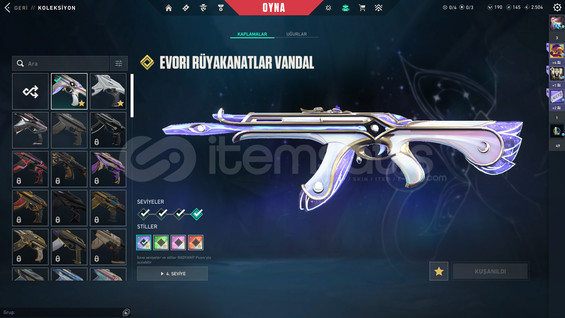 HESABIN İÇİNDEEVORİ VANDALİYON VANDALRGX PHANTOMİKİ ADET BATTLE PASSEXO KILIÇ BULUNMAKTADIR
