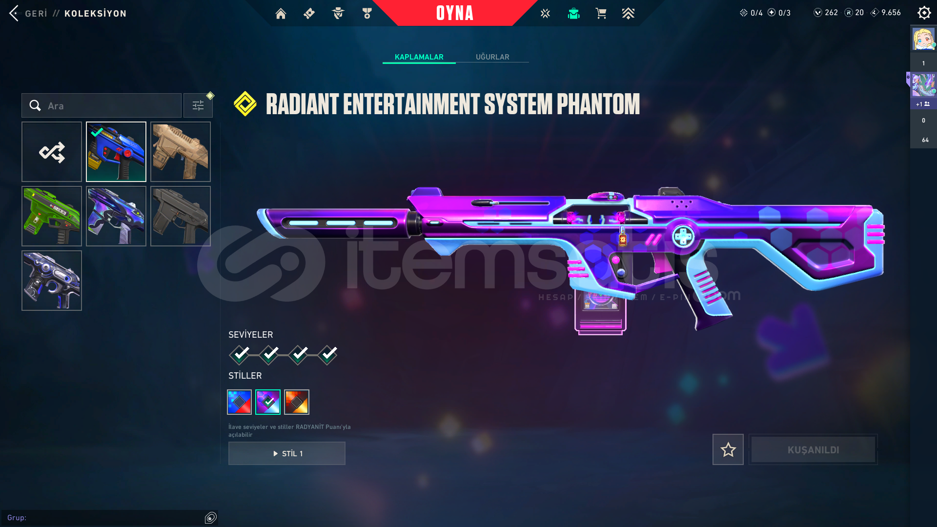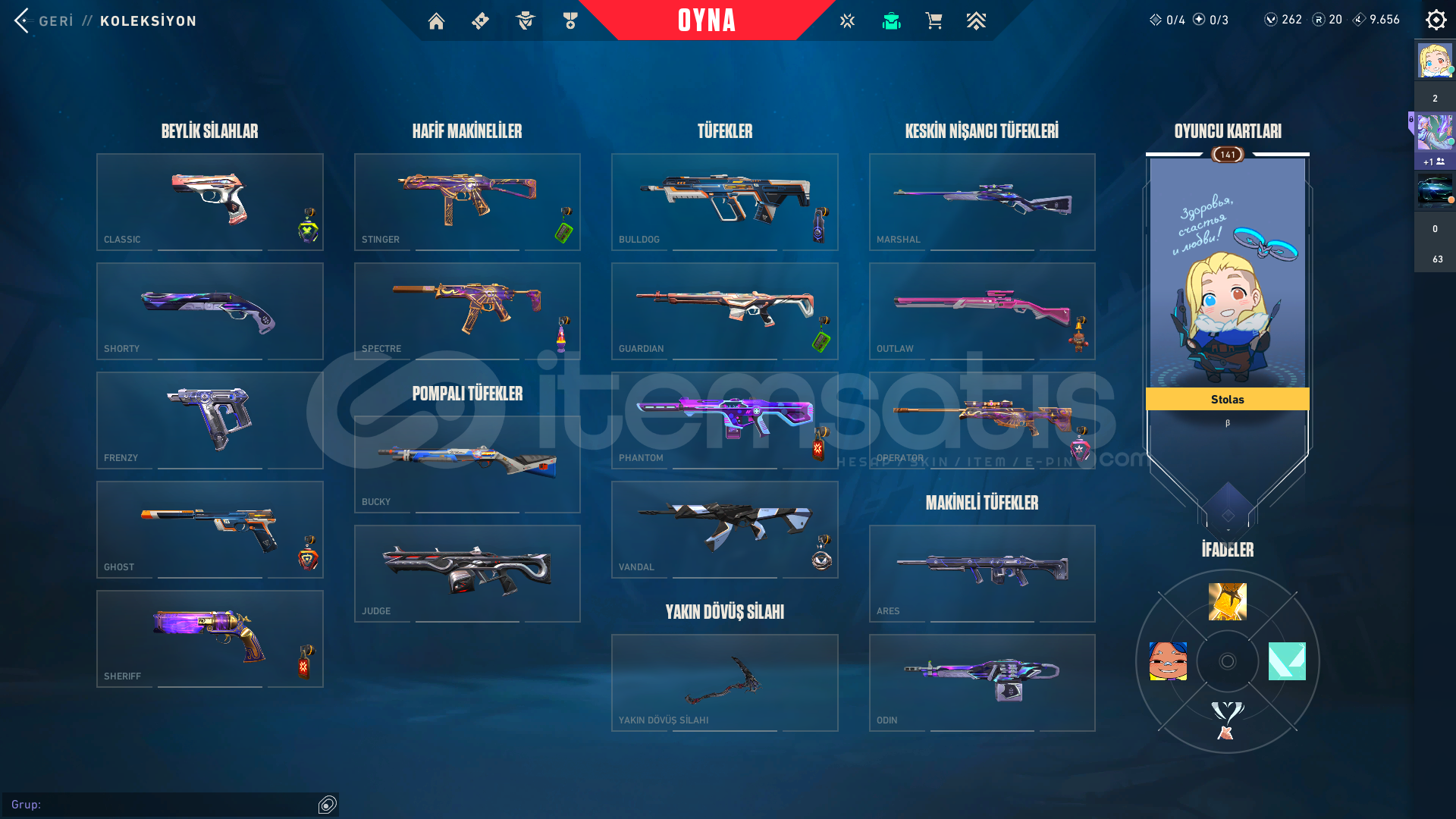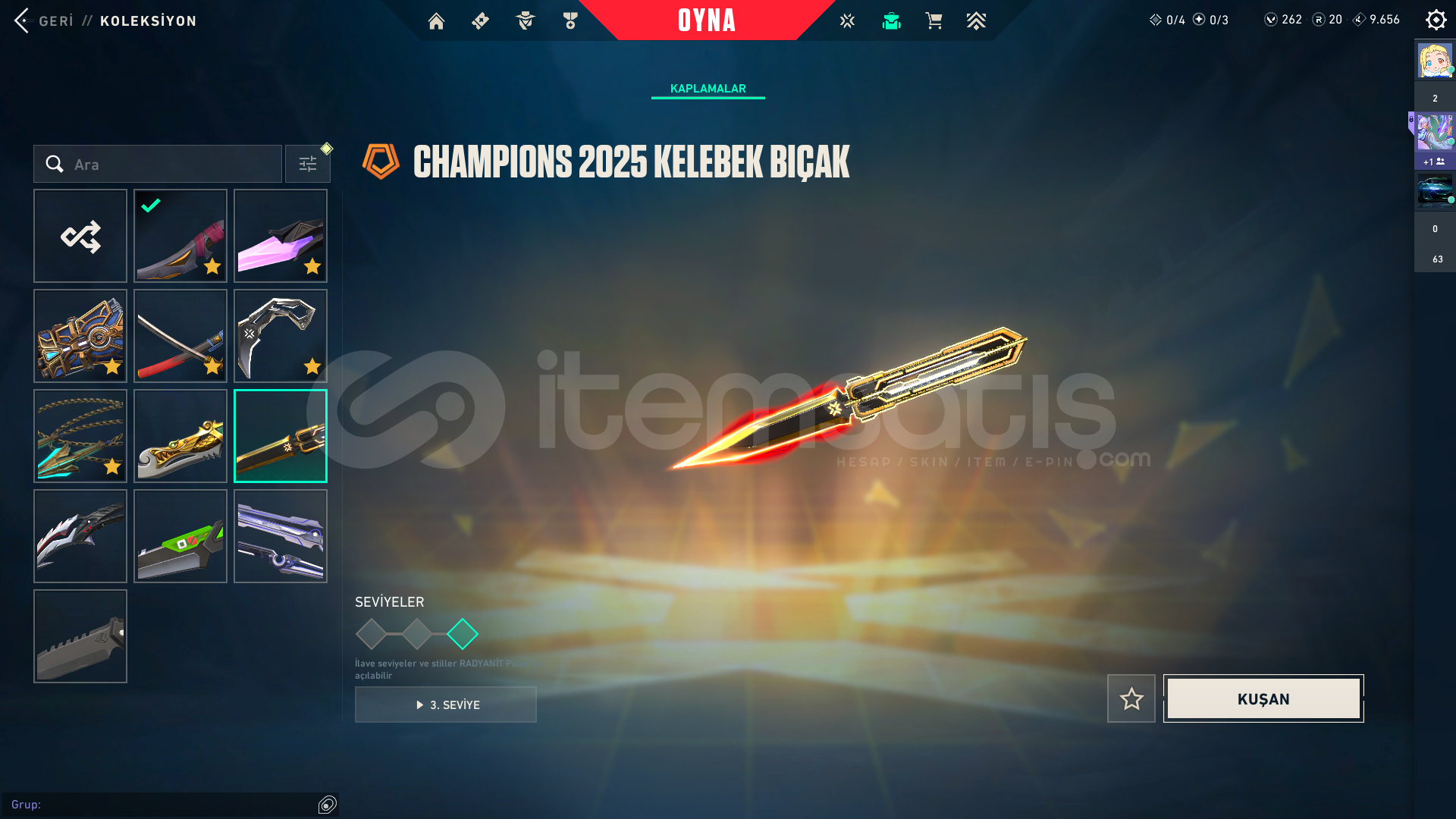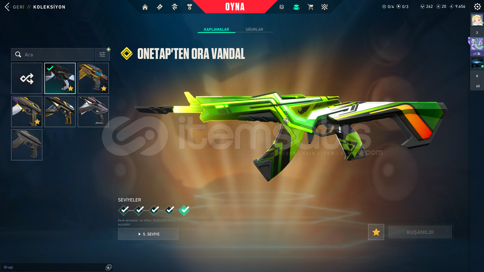 Kendi Hesabım Ranked Kasmadım Asil vandal ;1775Arcane Set;5925radiant entertainment system phantom;2975Seri Tetik şerif;2175El Yapımı Phantom;1275Yıldızparçalayan;5350Anomali kelebek;4350*3battle pas;3000 Oni katana:5;350VCT 2025 set:58505 years beta seti:3915Champions 2025 set:6640Zifiri tırpan 5350Ora vandal 2475TOTAL:56.405