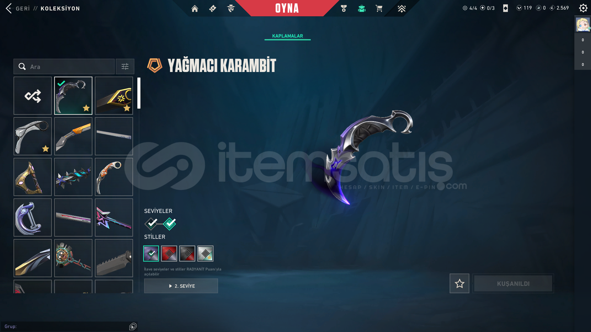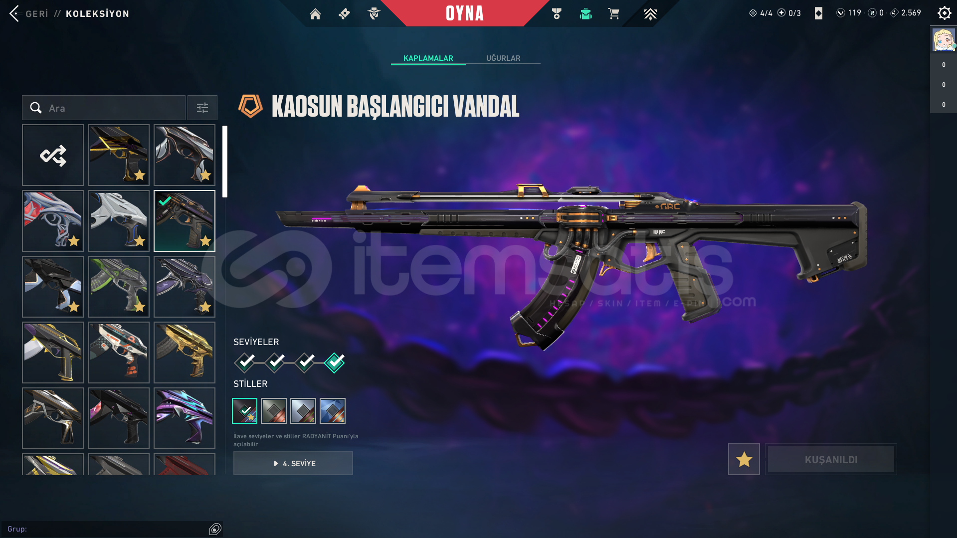 • HESAPTA 17 TANE VANDAL SKİNİ VAR