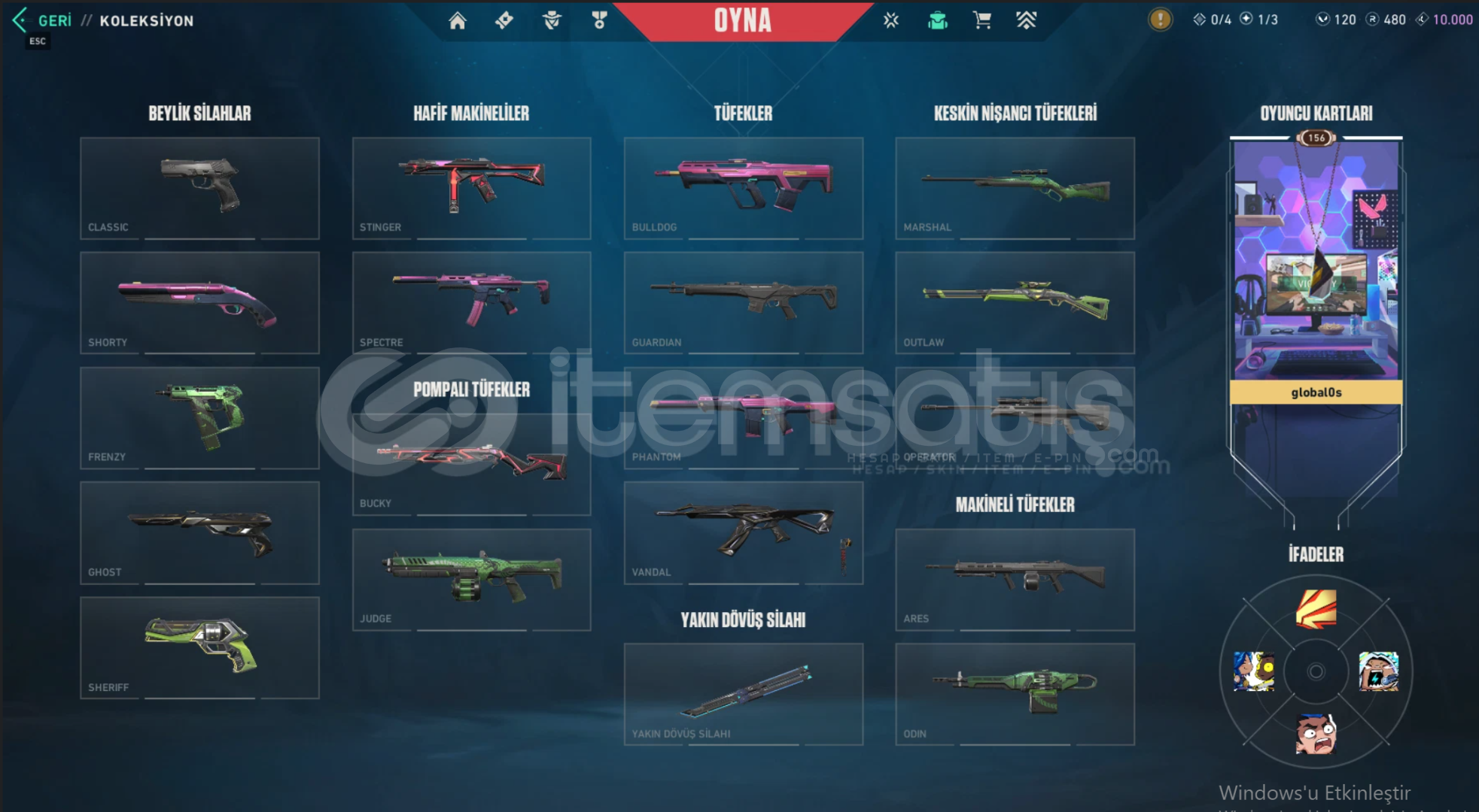 NOT: EU SUNUCUDUR İSTANBUL GİRİŞ YAPAR.RANK: Gold 2LEVEL: 156ENVANTER DEĞERİ: 26.675 VPRGX 11z Pro FireflyRGX 11z Pro KarambitRGX 11z Pro OutlawXERØFANG Knife.SYS MeleeGlitchpop VandalRGX 11z Pro SheriffXERØFANG VandalGaia's Vengeance VandalIon SheriffXERØFANG GhostTOPLAM: 27 Skintüm bilgiler değişir . Pazarlık yapabilme olanağım var. daha fazla bilgi için bana yazabilirsiniz