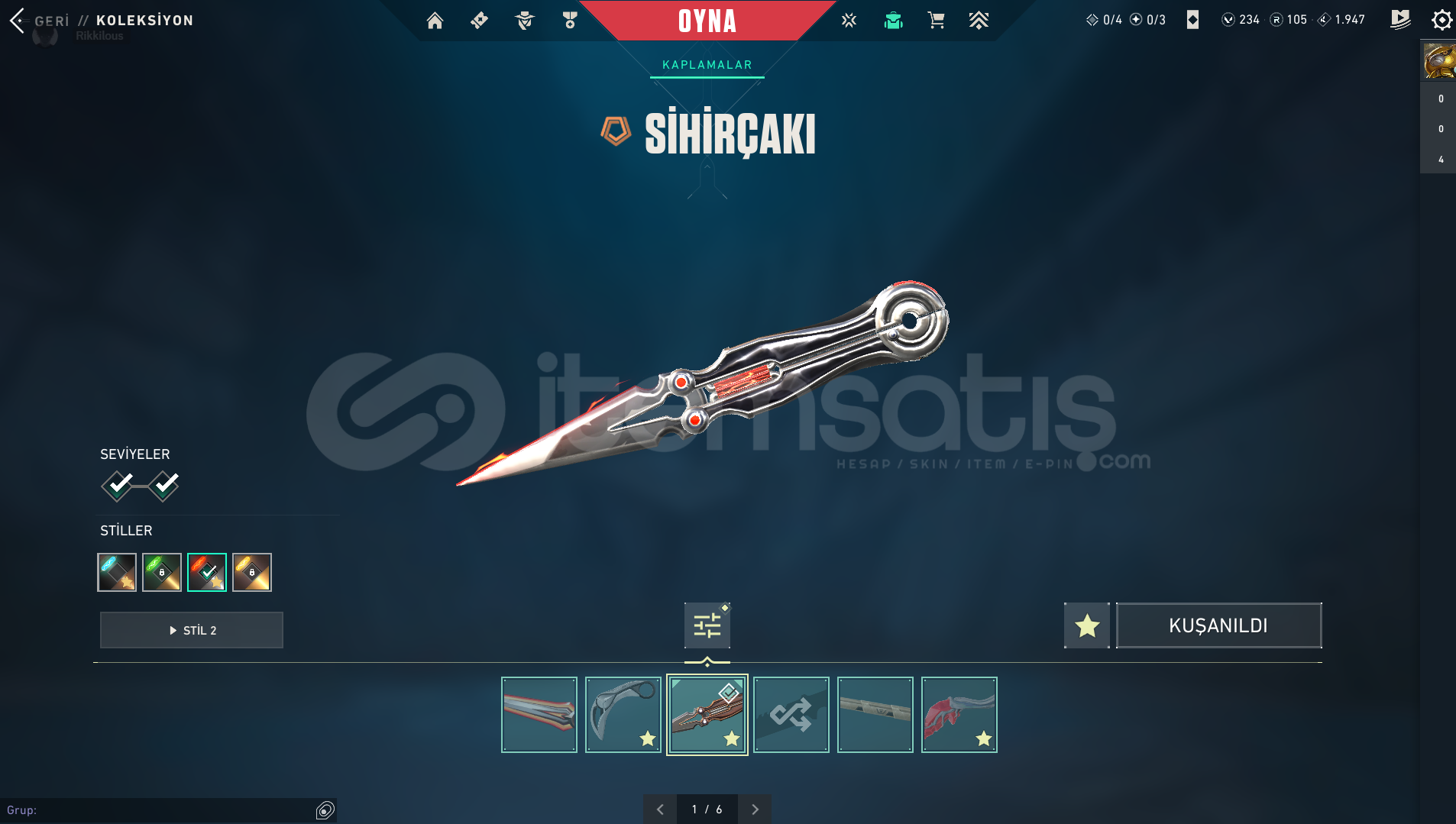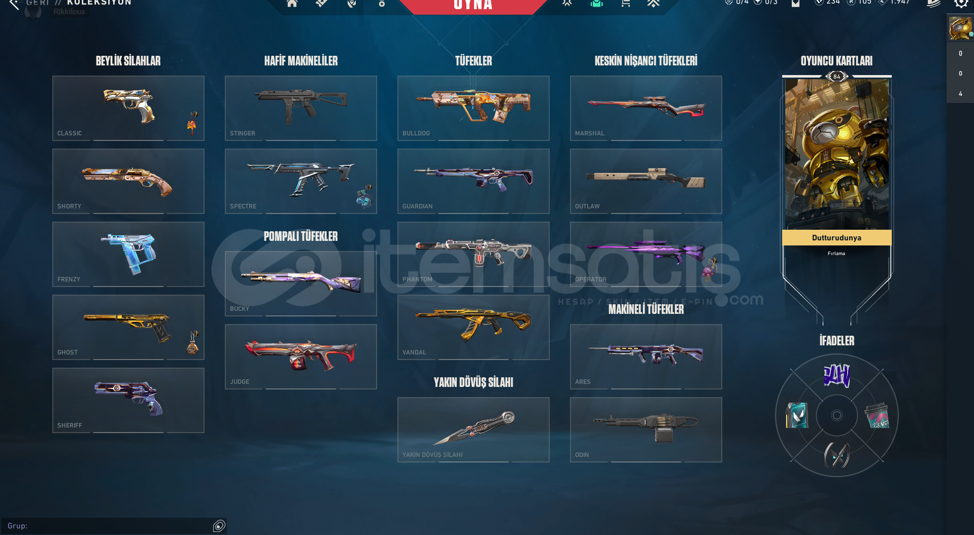 ⭐BIÇAKLAR : ⭐1-Sihirçakı 2-İyon Karambit3-Gaia'nın Azabı⭐VANDAL :⭐1-Faz Koruyucu Vandal2-Champions 2025 Vandal3-İyon Vandal4-Sihirpunk Vandal⭐PHANTOM :⭐Sihirpunk Phantom⭐OPERATOR :⭐Yıldız Belası Operatör⭐Spectre :⭐Kuronomi Spectre⭐Ghost:⭐Faz Koruyucu Ghost⭐Classic:⭐Yitik ClassicHESAP GOLD 3 DUR BATTLE PASS ALINMIŞTIR VE FULLENMİ...