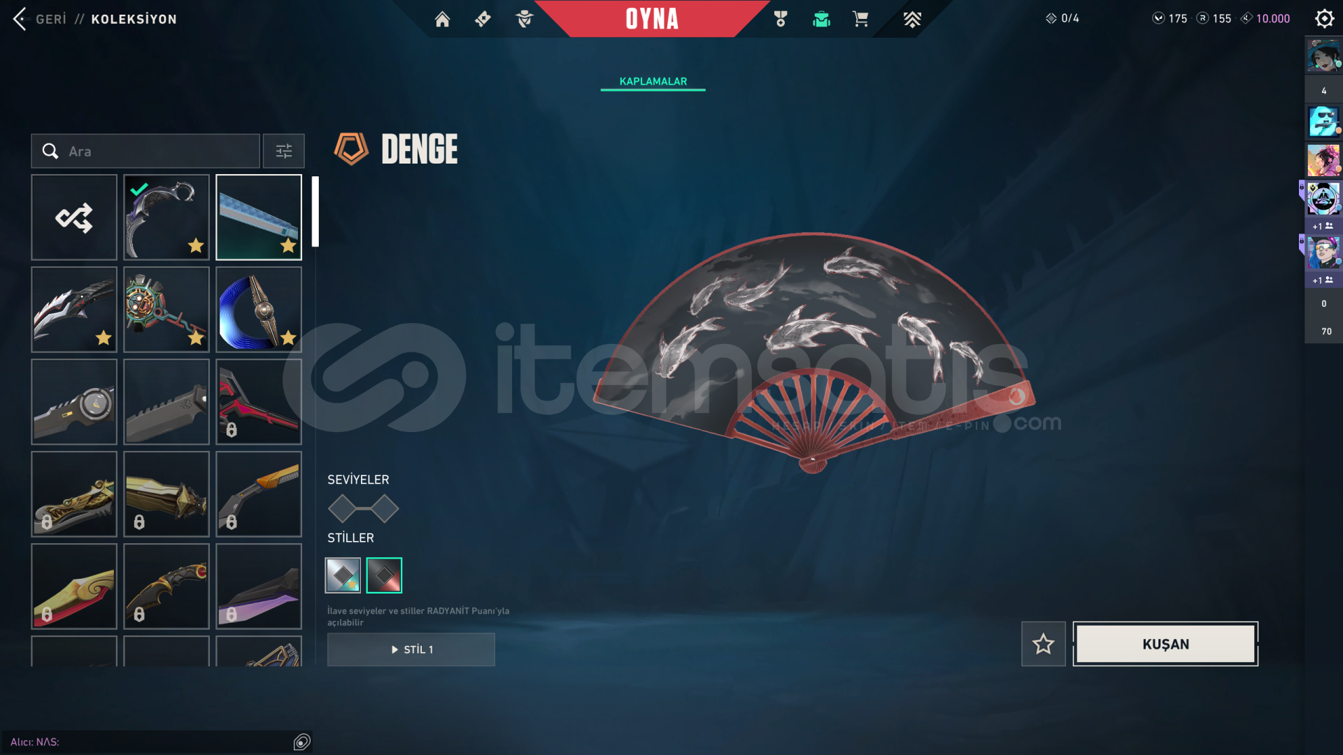Peak Rank: ASCENDANT 1Bıçak :YAĞMACI KARAMBİT-ZAMAN KÖKENİ-YELPAZEVandal :ASİL-ZAMAN KÖKENİ-İYONPhantom :YAĞMACI-ZAMAN KÖKENİGhost :YAĞMACISheriff :ZAMAN KÖKENİSpectre :YAĞMACIJudge :ZAMAN KÖKENİODİNYAĞMACIhesabı 2 ay önce başka kullanıcıdan satın aldım ve başka hesap almak için satıyorum hesabı aktif olarak kullanıyorum hi&ccedi...