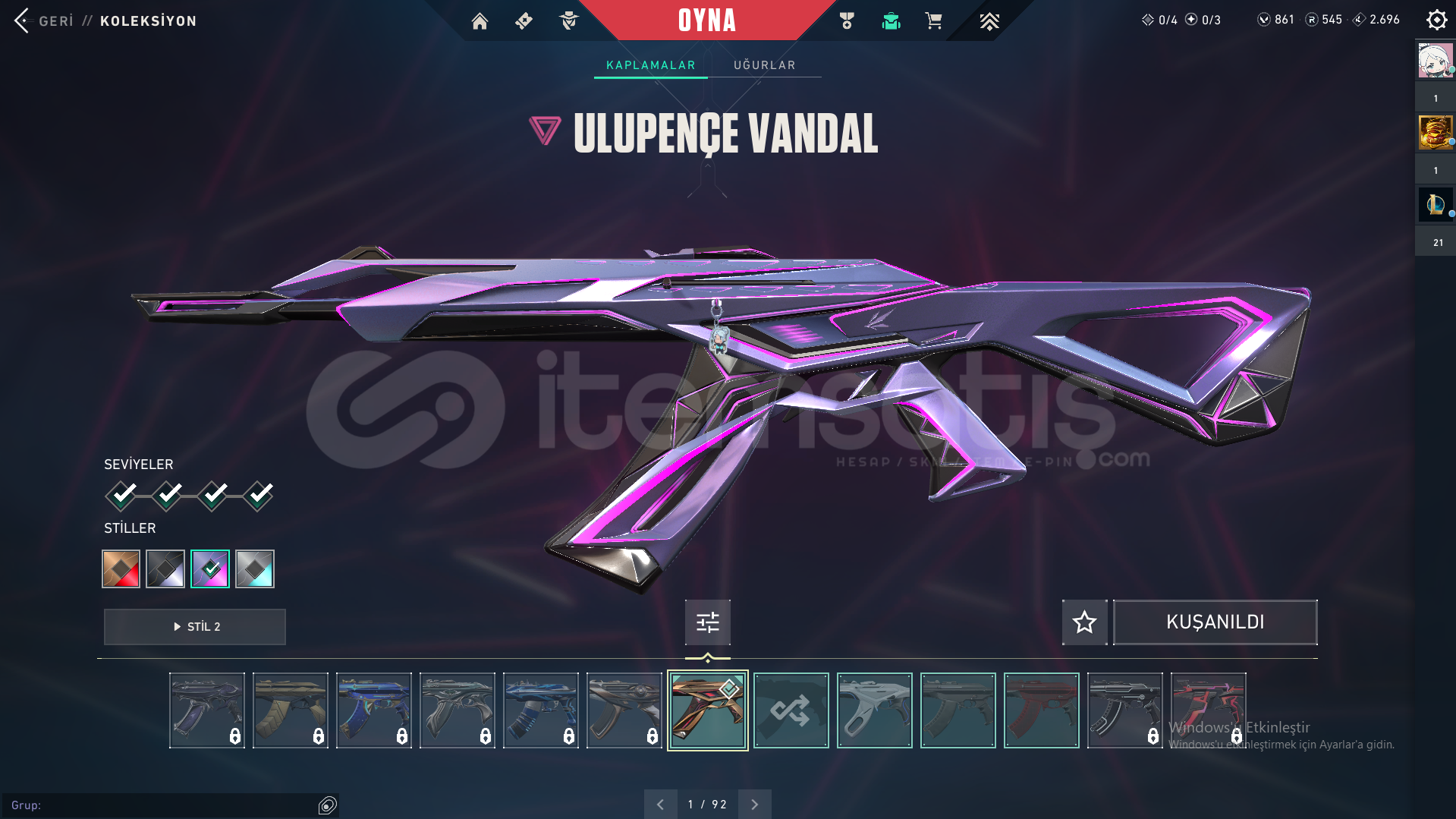 BÜTÜN AJANLAR AÇIK.ANOMALİ PHANTOM,İYON VANDAL,ULUPENÇE VANDAL,YİTİK OPERATÖR,KAOSUN BAŞLANGICI OPERATÖR,2 ADET SAVAŞ BİLETİNDEN HIZLI VE ÖLÜMCÜL KARAMBİT VE UZAY GEÇİDİ BIÇAKLARI VARDIR HESAPTA 861 VP BULUNMAKTADIR. PHANTOM VE VANDALDA SAVAŞ BİLETLERİNDEN SİKİNLER DE VAR GÖRDÜGÜNÜZ ÜZERE . PAZARLIK DÜŞÜNÜL&Uum...