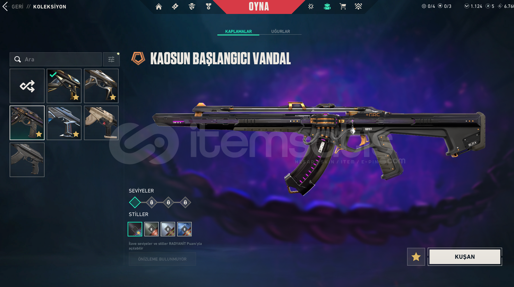 SUNUCU:TRRANK:BRONZE IILEVEL: 65ENVANTER DEĞERİ: 28,275 VPPhaseguard GhostPrelude to Chaos VandalMystbloom PhantomKuronami VandalChampions 2025 VandalMystbloom OperatorKuronami SheriffSolarex RelicNeo Frontier PhantomSentinels of Light VandalNeo Frontier MarshalPrime GuardianBolt OutlawRecon PhantomSolarex PhantomSolarex OdinATLAS // CMD SpectreSolarex SpectreATLAS // CMD VandalSolarex SheriffHeartbreaker BulldogSpace Piercer GuardianHeartseeker OutlawHeartbreaker OdinPerch ShortyTacti...