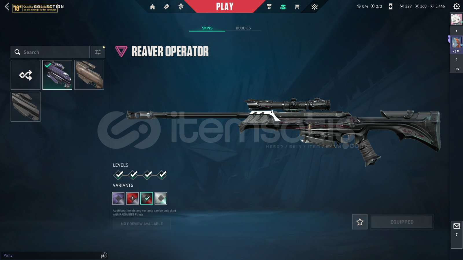 +35.000 VP HARCANMIŞRANK: DİAMONDLEVEL: 269VALORANT'DA 38SKİN MEVCUTSATIN ALNMIŞ İÇERİKLER:Xenohunter KnifeNeo Frontier SheriffNeo Frontier MarshalRuination PhantomPrime//2.0 KarambitOnimaru KunitsunaReaver VandalOni PhantomXERØFANG VandalPrime VandalReaver PhantomReaver OperatorForsaken VandalSovereign GhostReaver Sheriff🧨 Ürün AçıklamasıErişim ve E-Posta BilgileriSatın alma işlemi tamamlandı...