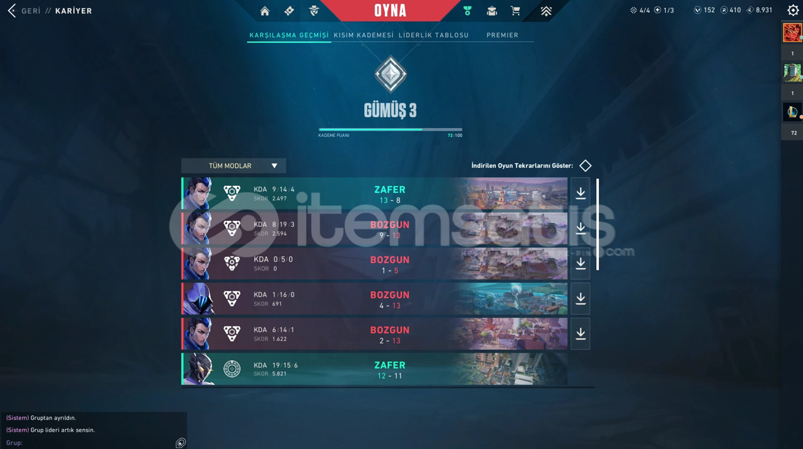 ⭐️REVOX ALIM-SATIM GARANTİSİ⭐️⭐️HER BÜTÇEYE UYGUN HESAP VARDIR⭐️⭐️SATIN ALAN KİŞİLERE MİNİK SÜPRİZLERİMİZ VARDIR⭐️HESAPTA 3 ADET BIÇAK VAR(ULU PENÇE VS.)HESAP TA 4 TEN FAZLA VANDAL SKİNİ VAR(DEĞERLİ)HESAP TRHESAP GÜMÜŞ 3HESAP