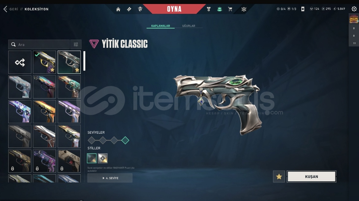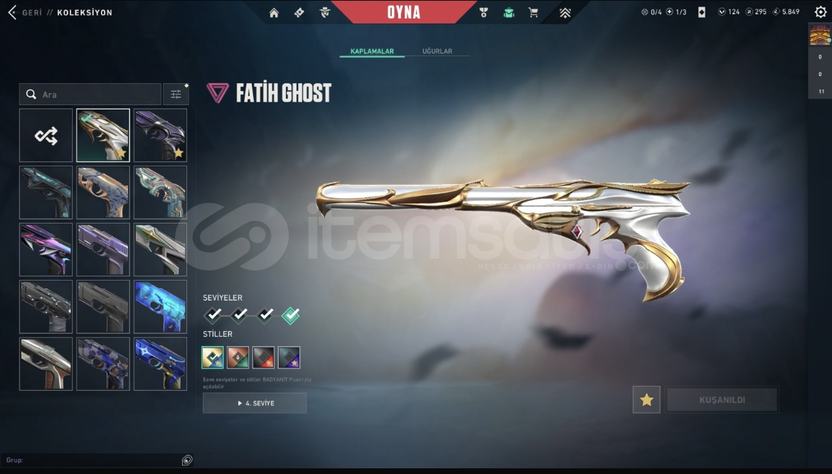 Rank = Diamond 2 Sunucu = Türkiye Skin sayısı = 113Envanter Değeri = 53.875Singularity AresSongsteelVelocity KarambitReaver KnifeK/TAC BladeRecon BalisongRuination PhantomSingularity SheriffReaver KarambitRuination GhostObsidianaPrism III AxeReaver VandalSovereign GuardianSovereign GhostReaver OperatorSovereign MarshalPrime//2.0 FrenzyPrime SpectreReaver GhostIon PhantomReaver SheriffPrime//2.0 PhantomReaver OdinMagepunk MarshalPrime ClassicReaver SpectreIon OperatorForsaken ...