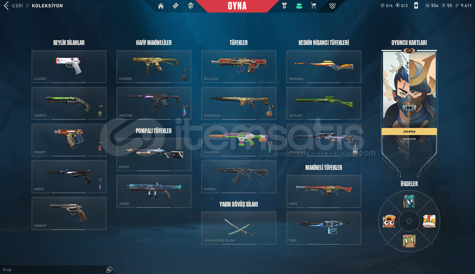 RANK:SİLVER 1NOT:EU SUNUCUNUN TR DEN HİÇBİR FARKI YOKTUR HERHANGİ BİR OYNANIŞTA FARK BULUNMAMAKTADIR.LEVEL: 183CYRAX VandalChronoVoid VandalNeo Frontier SheriffObsidianaRGX 11z Pro VandalSpectrum ClassicSingularity VandalRecon BalisongSingularity GhostBlastX PhantomSingularity SheriffComposite KnifeGlitchpop VandalTilde KnifeSingularity PhantomBoundPrelude to Chaos VandalOnimaru KunitsunaOverlay DaggerSingularity SpectreSingularity Butterfly KnifeAraxys Vanda...