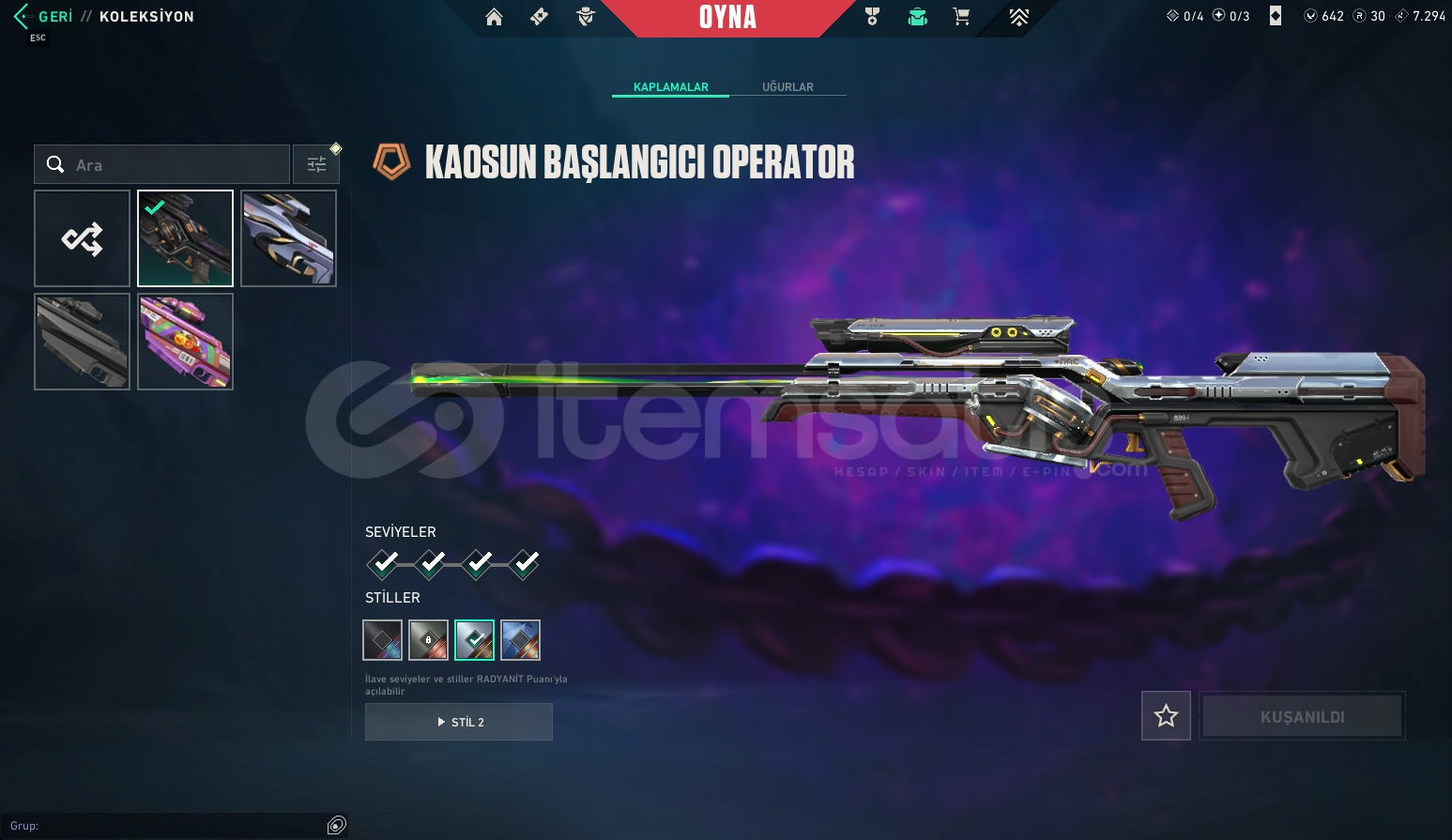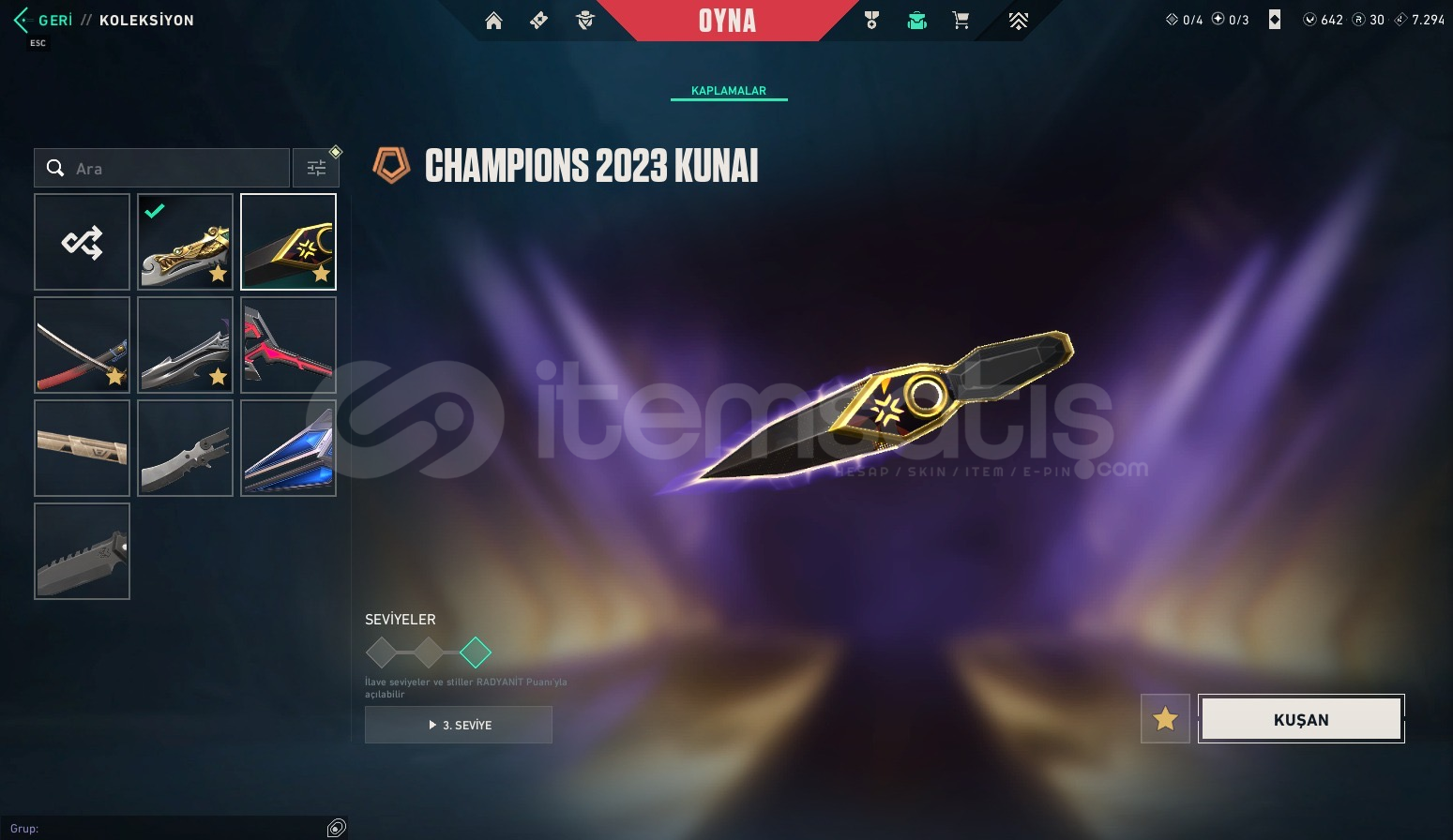 RANK:GOLD 3LEVEL:171ENVANTER DEĞERİ:73,971Elderflame VandalSpectrum PhantomGlitchpop VandalReaver KnifeChampions 2023 VandalATLAS // CMD BatonBlack.Market Butterfly KnifeSolarex RelicChampions 2023 KunaiOnimaru KunitsunaAraxys Vandal.SYS MeleePrelude to Chaos OperatorVCT25 x TLN ClassicKuronami VandalSingularity Spectre5 Years // Beta Remastered KnifeOni FrenzyIon SheriffOni VandalOni AresReaver VandalIon VandalOni BulldogNeptune PhantomNeptune VandalXERØFANG VandalReaver GhostP...