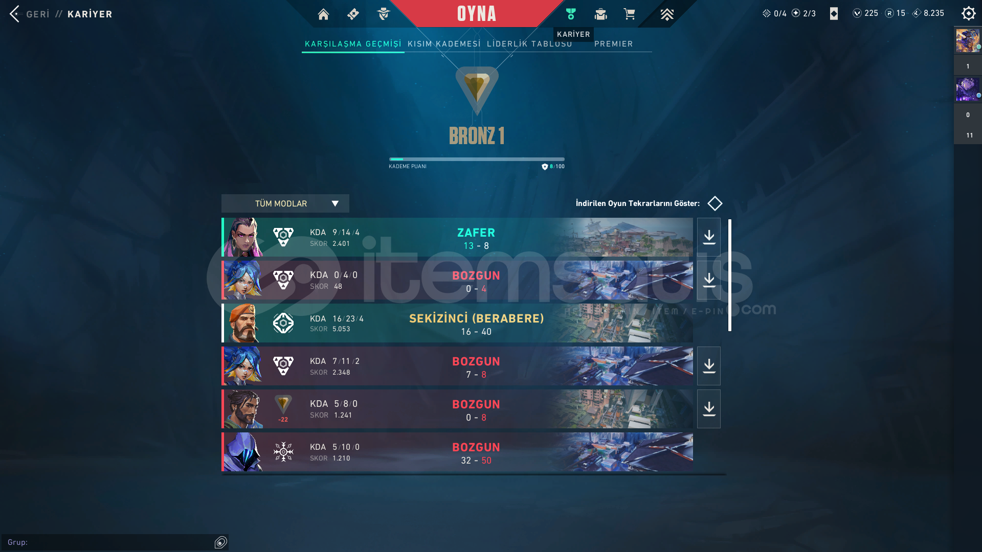 ⭐ SUNUCU AVRUPA⭐ 3 SKİN⭐ TELEFON ONAYSIZ⭐ MAİL TESLİM⭐ AKTİF RANK BRONZE