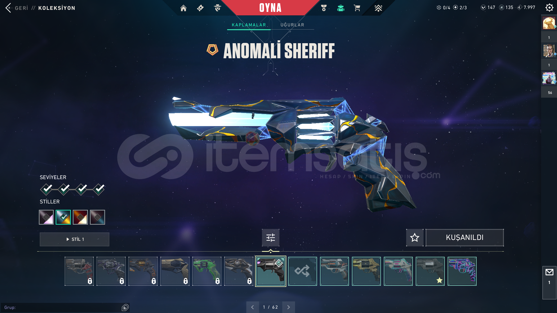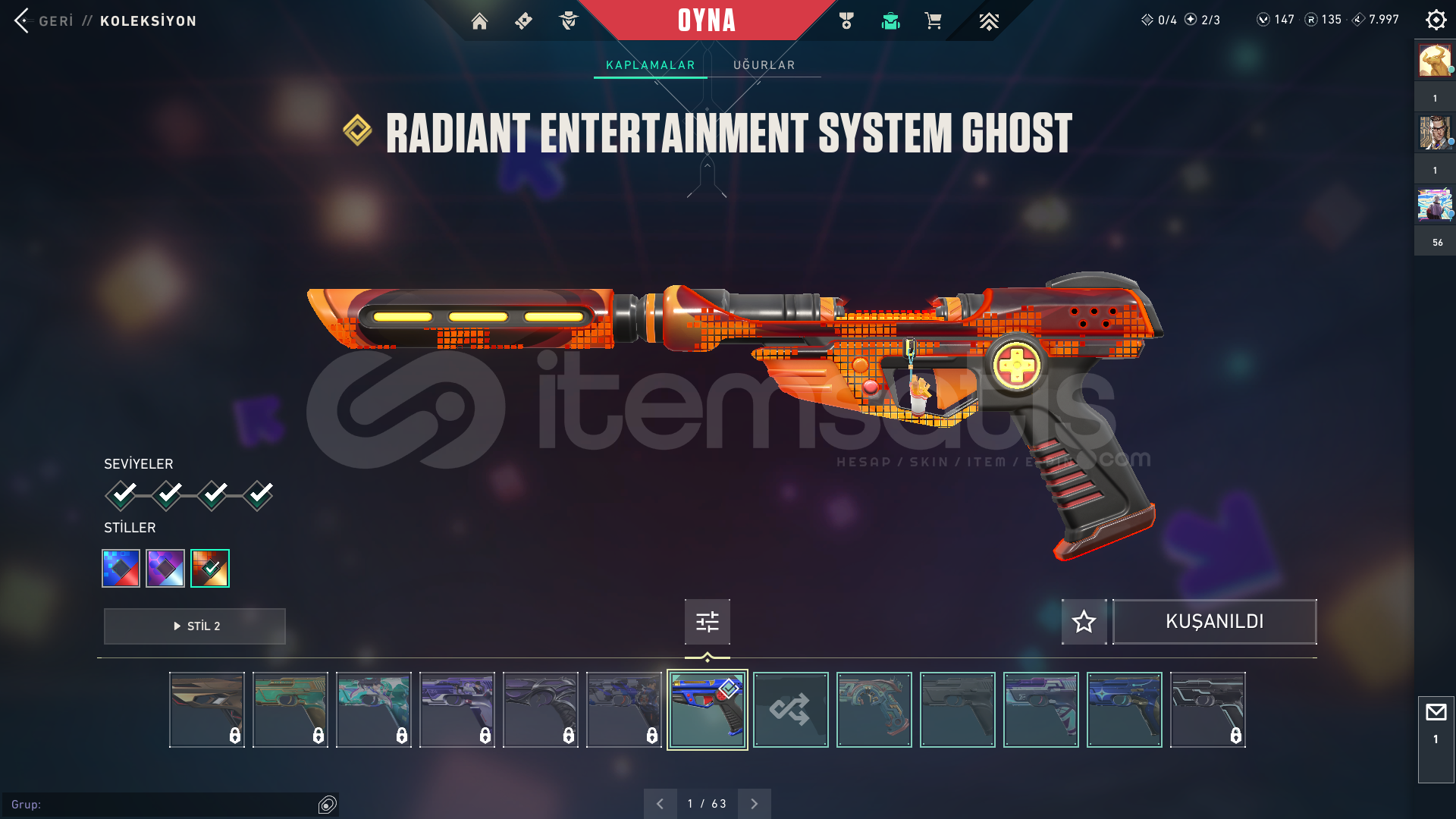 🎯 Önemli Skinler:Radiant Entertainment System GhostSpectrum ClassicRGX 11z Pro OutlawKuronami VandalTilde KnifeChampions 2022 PhantomChampions 2022 Butterfly KnifeSingularity SheriffObsidianaGaia's Vengeance GuardianPrime VandalMagepunk VandalReaver SpectreForsaken OperatorVe dahası...📌 Detaylar:Hesap mailli olarak teslim edilir; mail bilgileri tamamen size devredilir ve dilediğiniz bilgilerle değiştirilebilir.Satın aldığ...