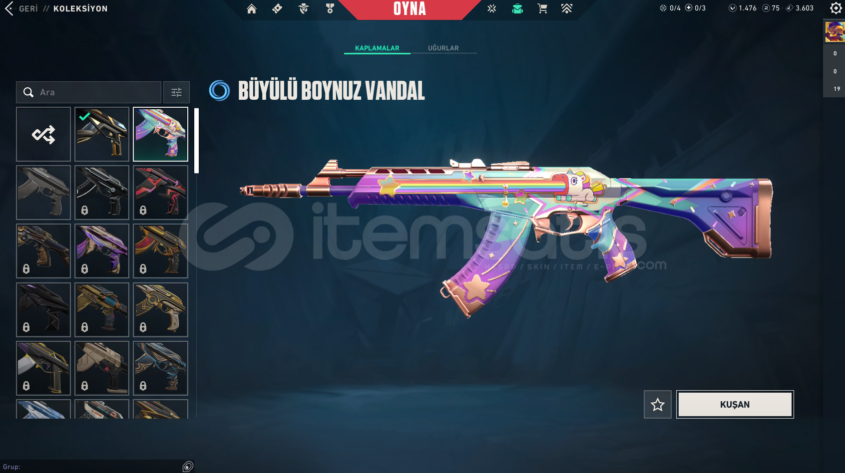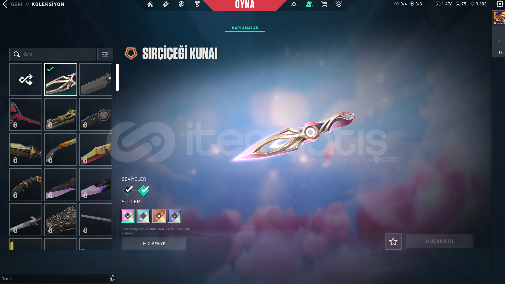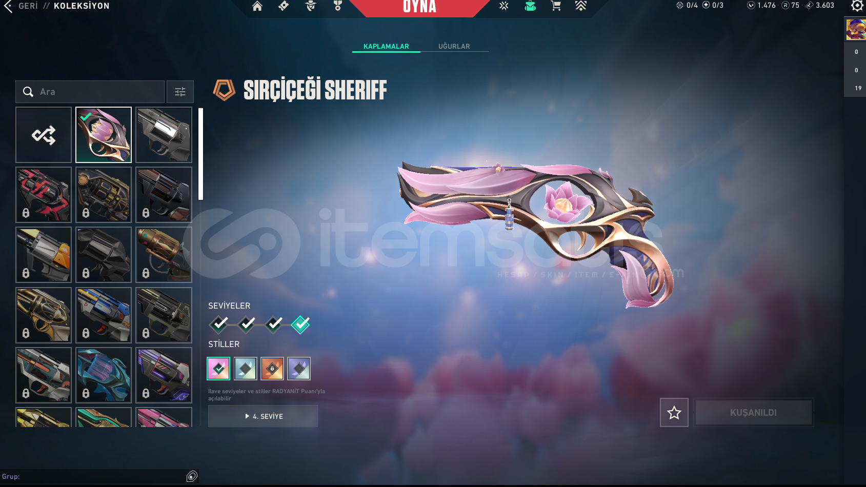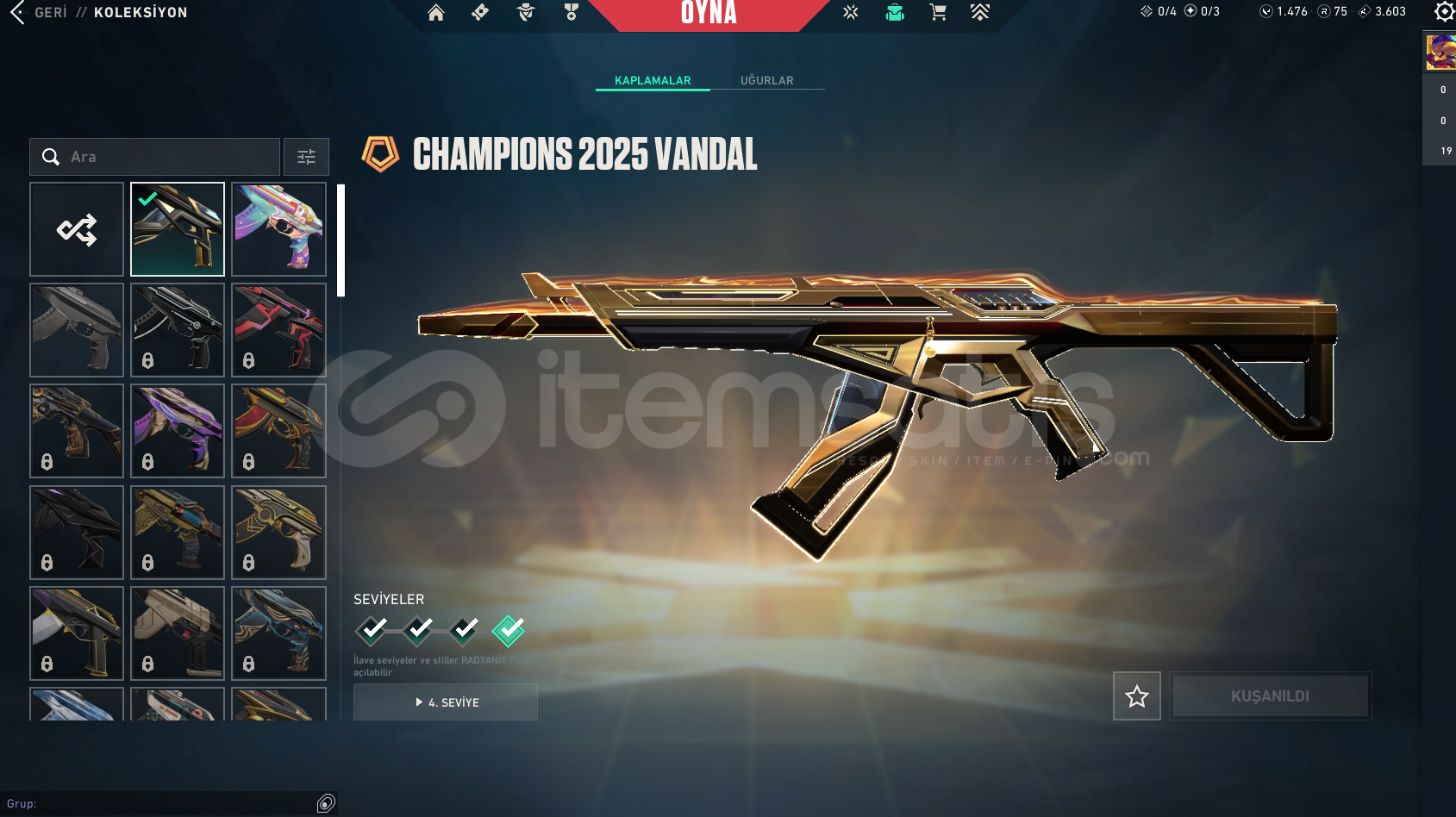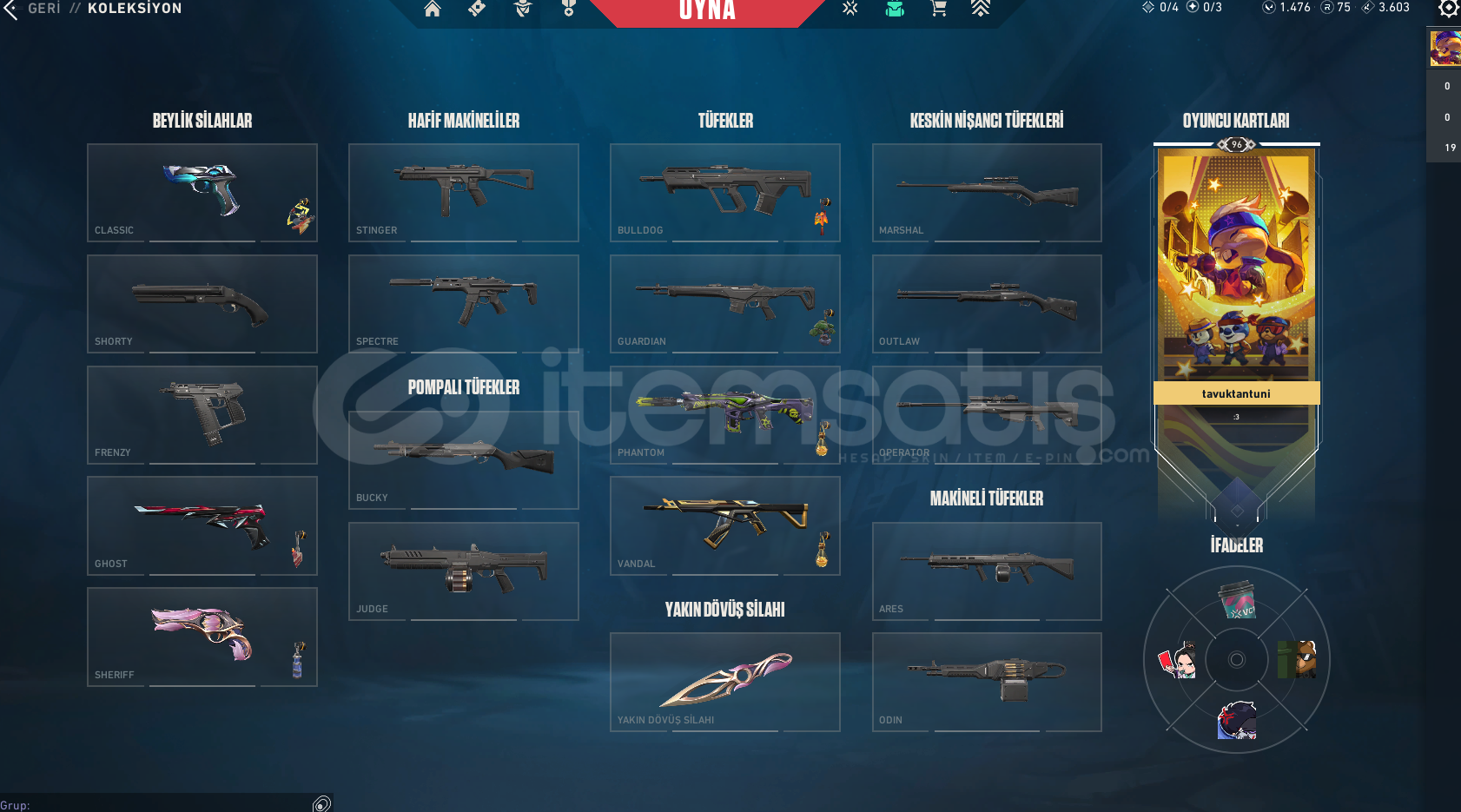 ALACAĞINIZ HESABIN MAİL ŞİFRE TÜM BİLGİLERİ DEĞİŞİR.GÖRSELDE GÖRDÜĞÜNÜZ HESAP TESLİM EDİLECEKTİR.SİLAH RENKLERİNİ SKİN OLARAK SAYMIYORUZ.DİĞER BÜTÇEYE UYGUN İSTEK SKİNLİ İLANLAR İÇİN BİZE ULAŞIN.
