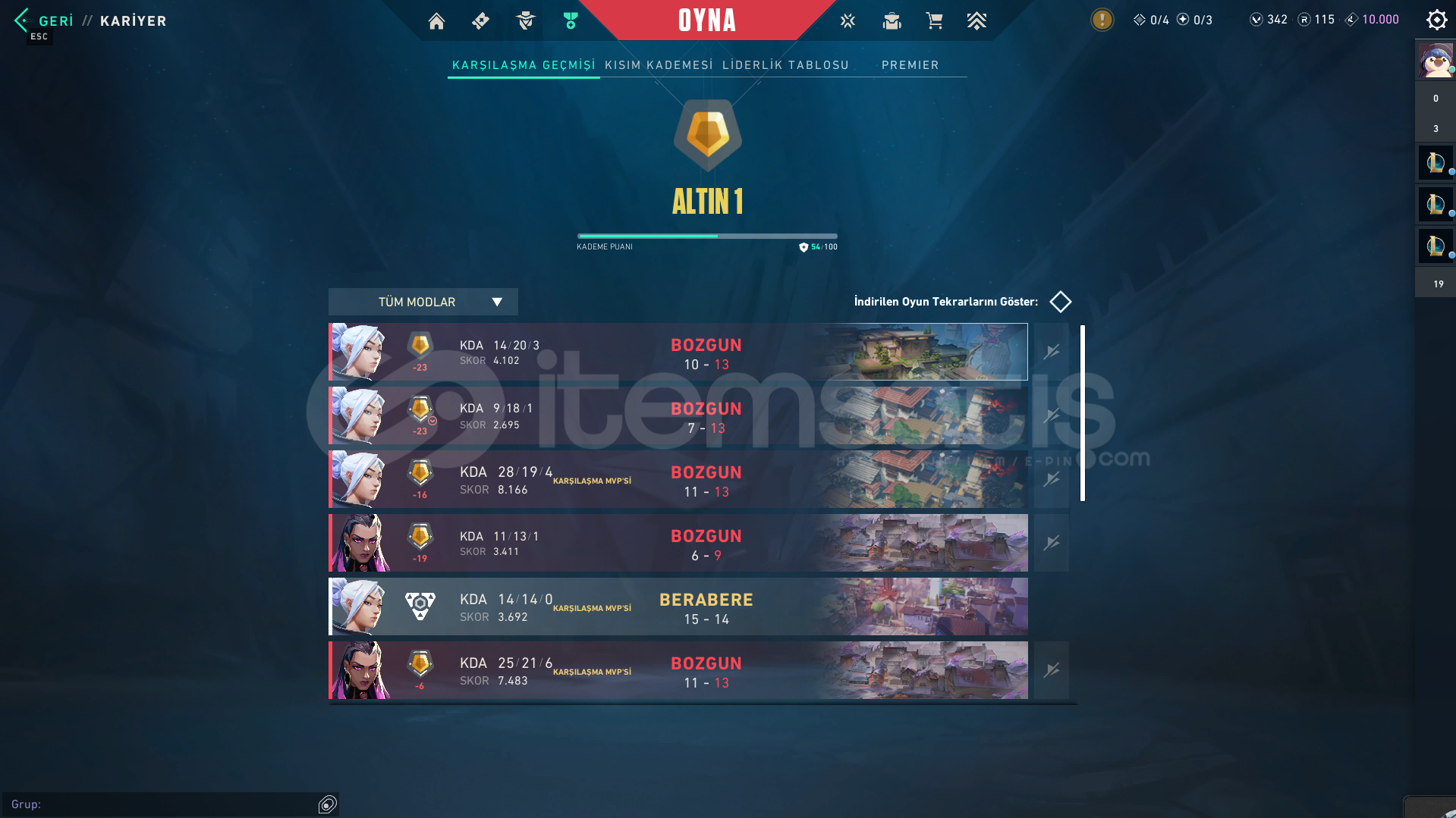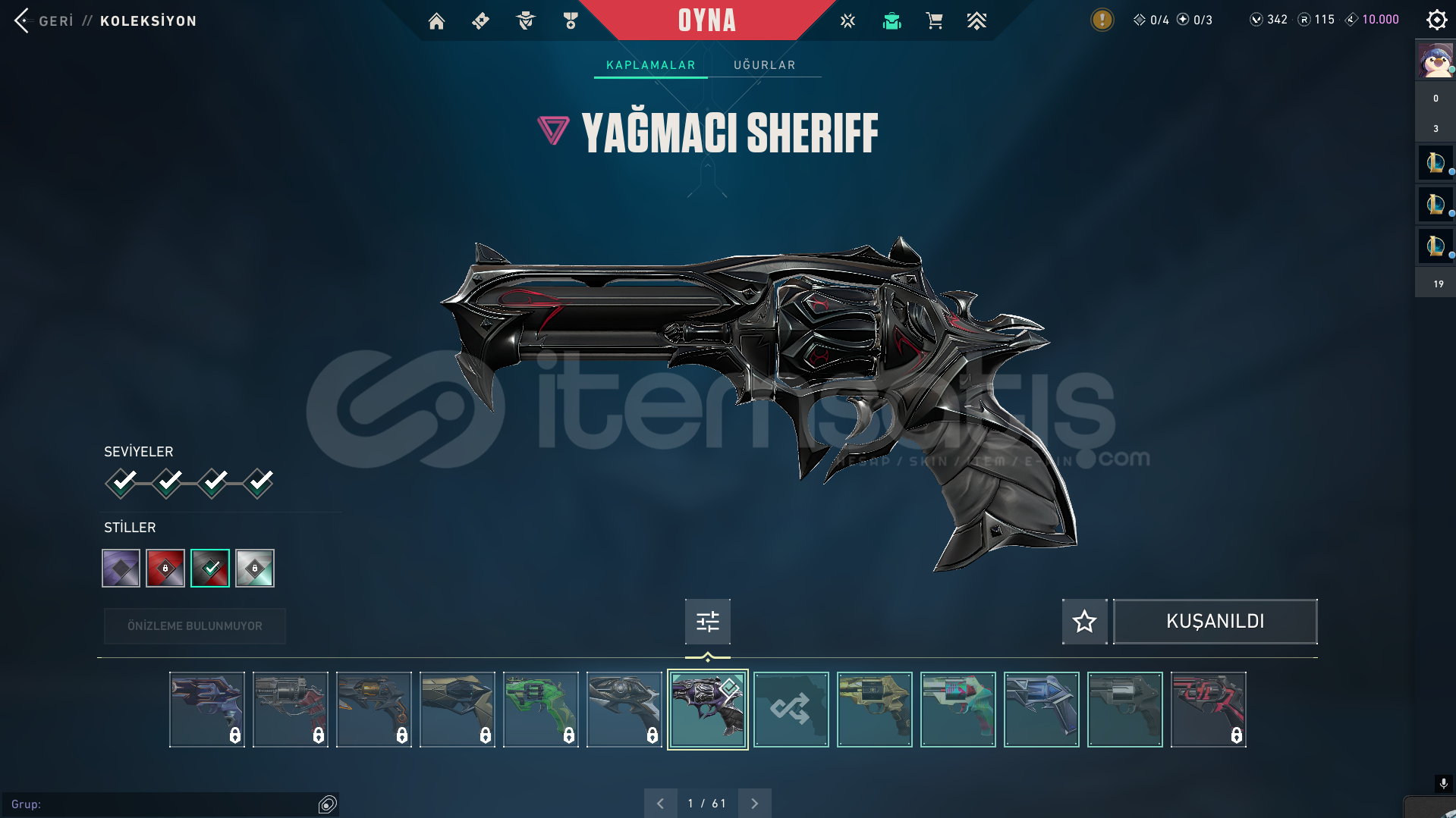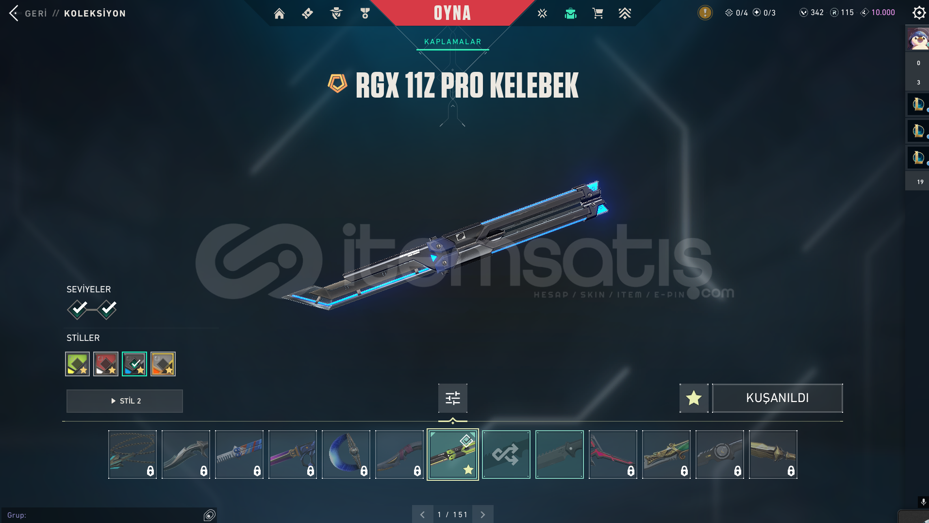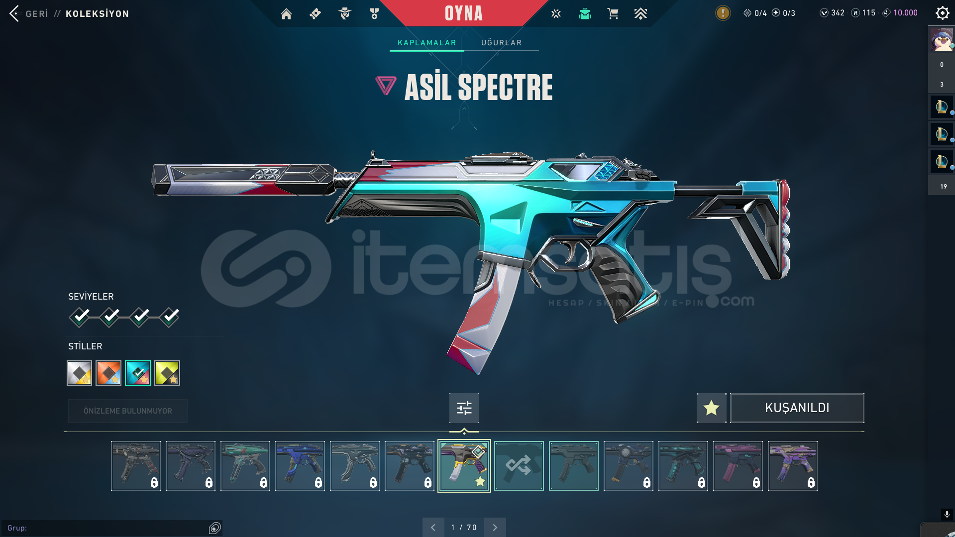 Bıçak:Rgx KelebekVandal:YağmacıAsilEjderYıldız BelasıPhantom:OniSpectrumSpectre:AsilSheriff:YağmaciGhost:Fatih