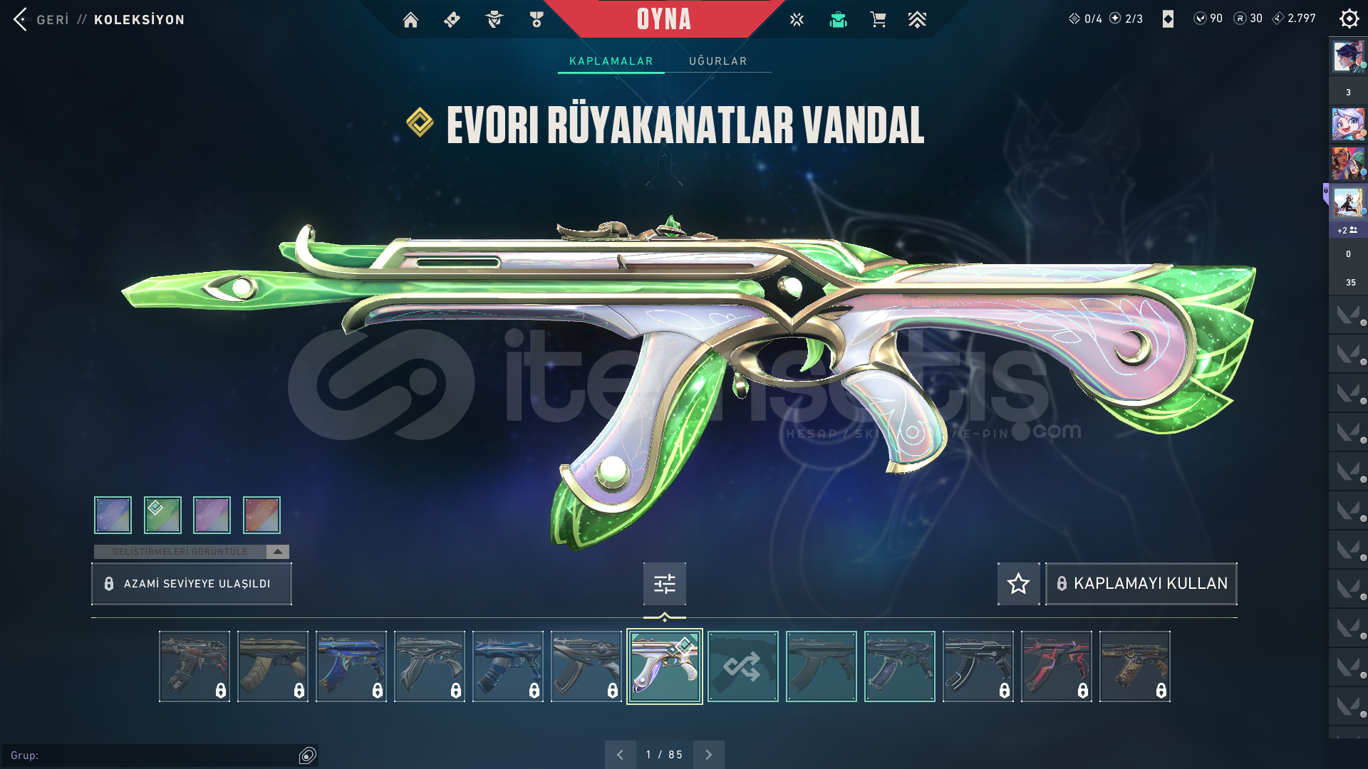 -HESAPTA BULUNAN SKİNLER EVORİ RUYAKANTLAR VANDAL , YAĞMACI VANDAL , ASİL CLASSIC , SOLOREX YADİGAR BIÇAK , İYON ARES VE BATTLE PASS SKİNLERİ MEVCUTTUR