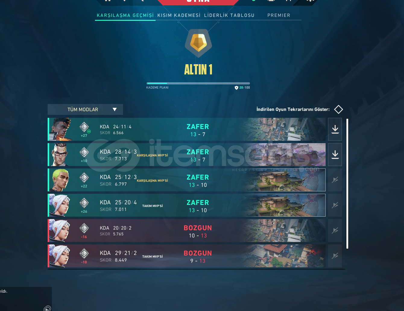 ❤️ANINDA TESLİM❤️❤️GOLD ELO❤️Hesabın rankı demirdir.TR/İstanbul sunucusudurBan durumu yoktur.İsim değiştirme hakkı mevcuttur.İletişim ve sorunlar için yazabilirsiniz.