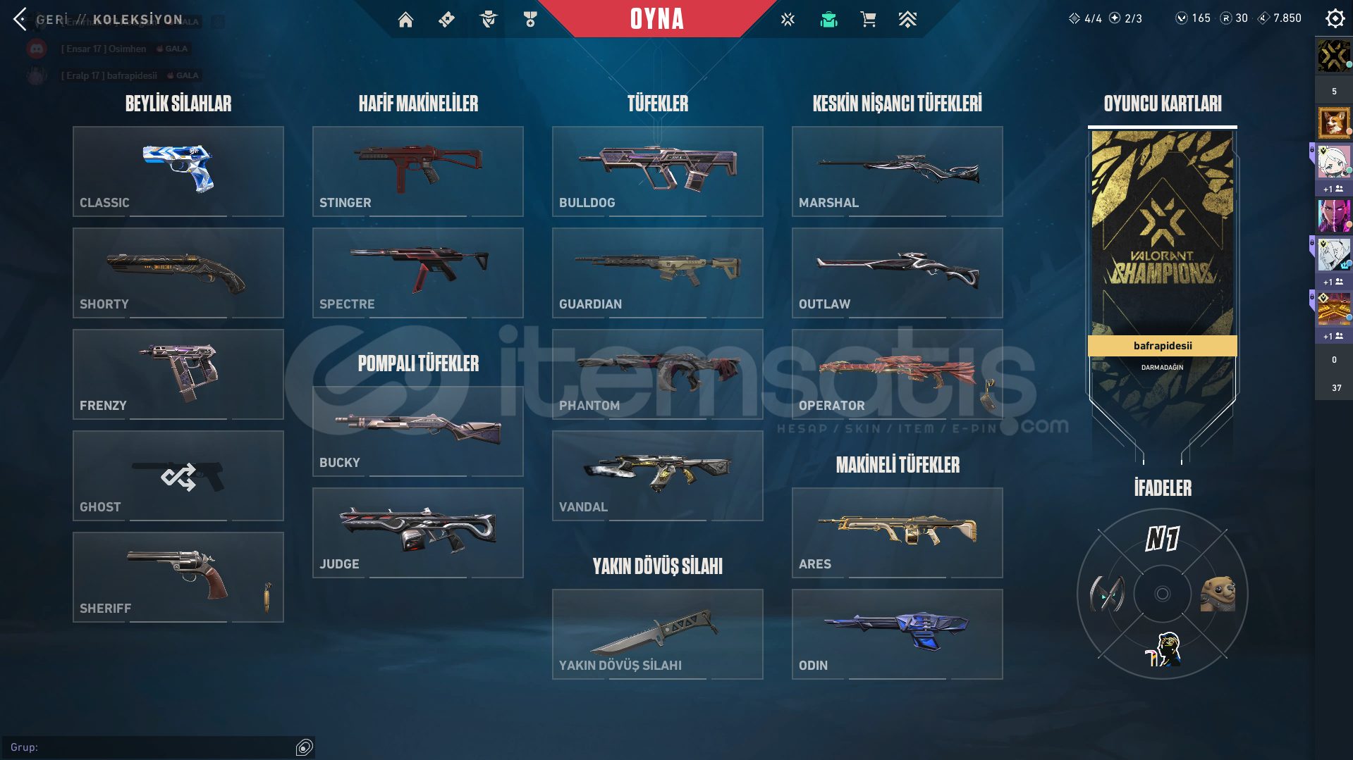 PAZARLIK PAYI YOKTUR , SON FİYATİÇİNDEKİLER :VCT CLASSİCGAİA GHOSTSERİ TETİK SHERİFFŞİMŞEK SPECTREFATİH MARSHALÖZEL HAREKAT GUARDİANZİFİRİ PHANTOMÖZEL HAREKAT PHANTOMPROTOKOL PHANTOMYİTİL VANDALİYON VANDALAEMONDIR VANDALKAOS VANDALEJDER OPİYON OPKÖKEN OPGAİA'NIN GAZABI BIÇAKİYON KARAMBİTUZAYLI AVCISI BIÇAK+3 BP BIÇAĞITÜM AJAN...
