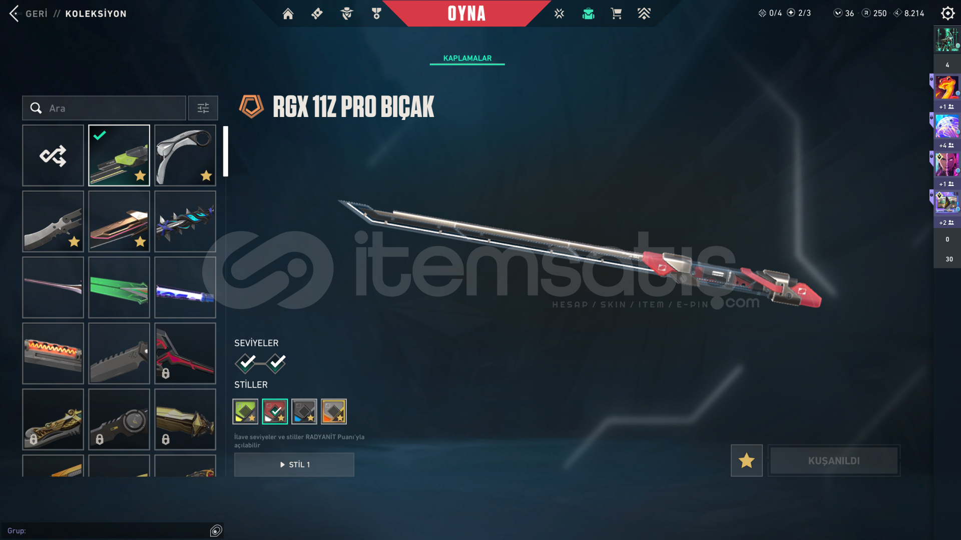 • hesapta 11 tane bıcak deseni vardır -rgx katana-ulu pençe-iyon karambit-karaborsa kelebek
