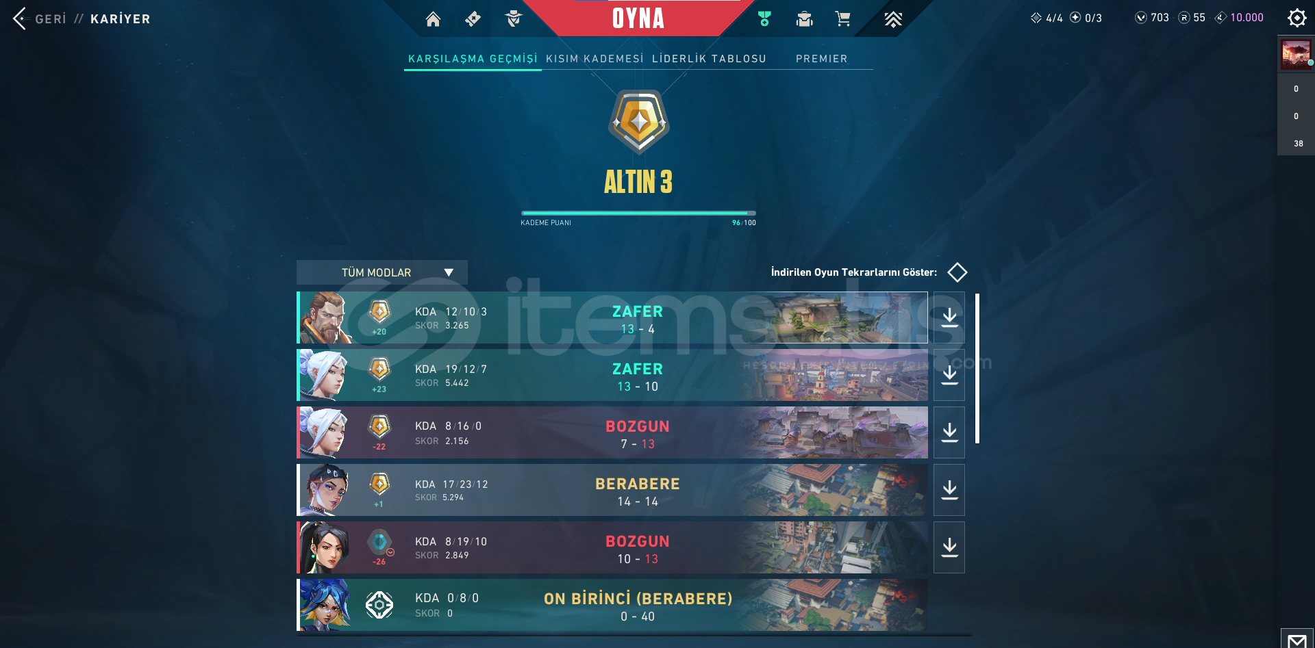 İlk maili vereceğim hesap bu sayede tam garantilidirHesap önceki sezon plat 3 bitirmiştirAnlık Altın 3'türİsim değiştirme hakkı mevcuttur185 leveldir 703 vpsi vardırHesaptaki skinler:Semavi YelpazeAsil KarambitUlupençe VandalKaos VandalAeomondır VandalChampions 2023 VandalFelaketin Kalbi VandalOni VandalHelezon PhantomGaia PhantomAemondır BulldogGaia Marshallİyon OperatörYağmacı SheriffFatih GhostK&o...