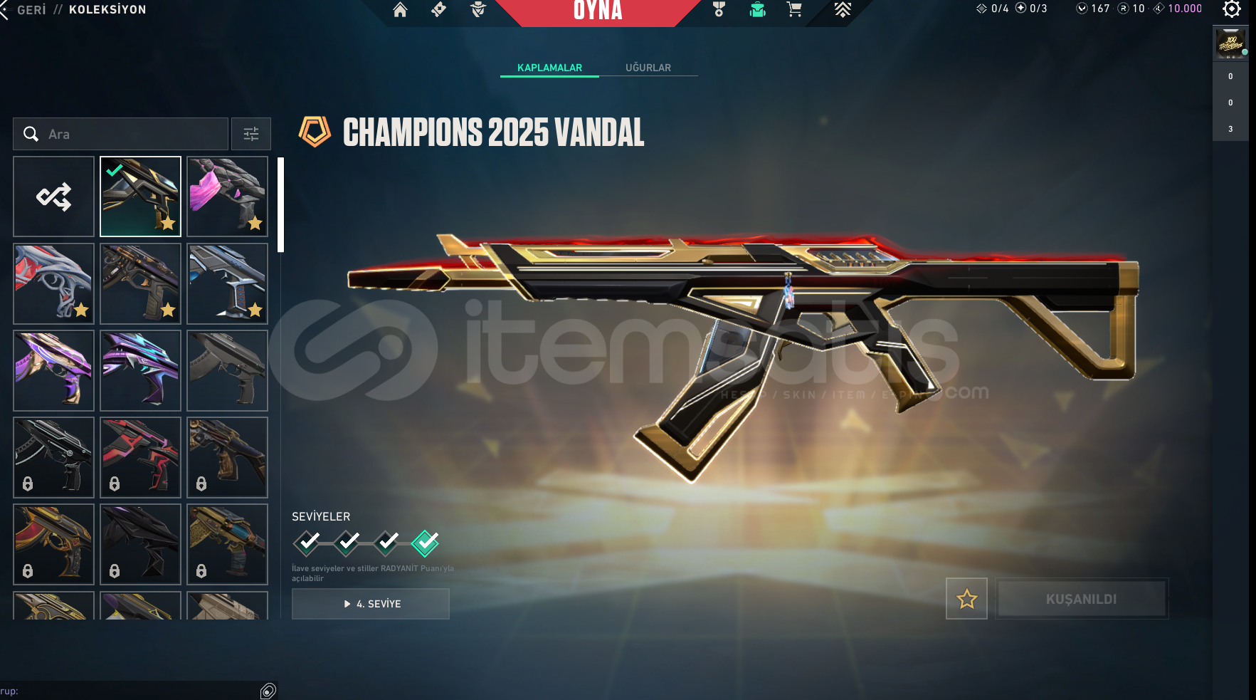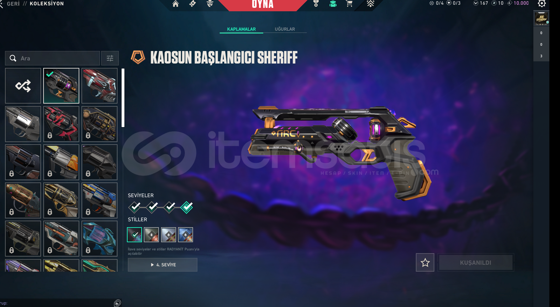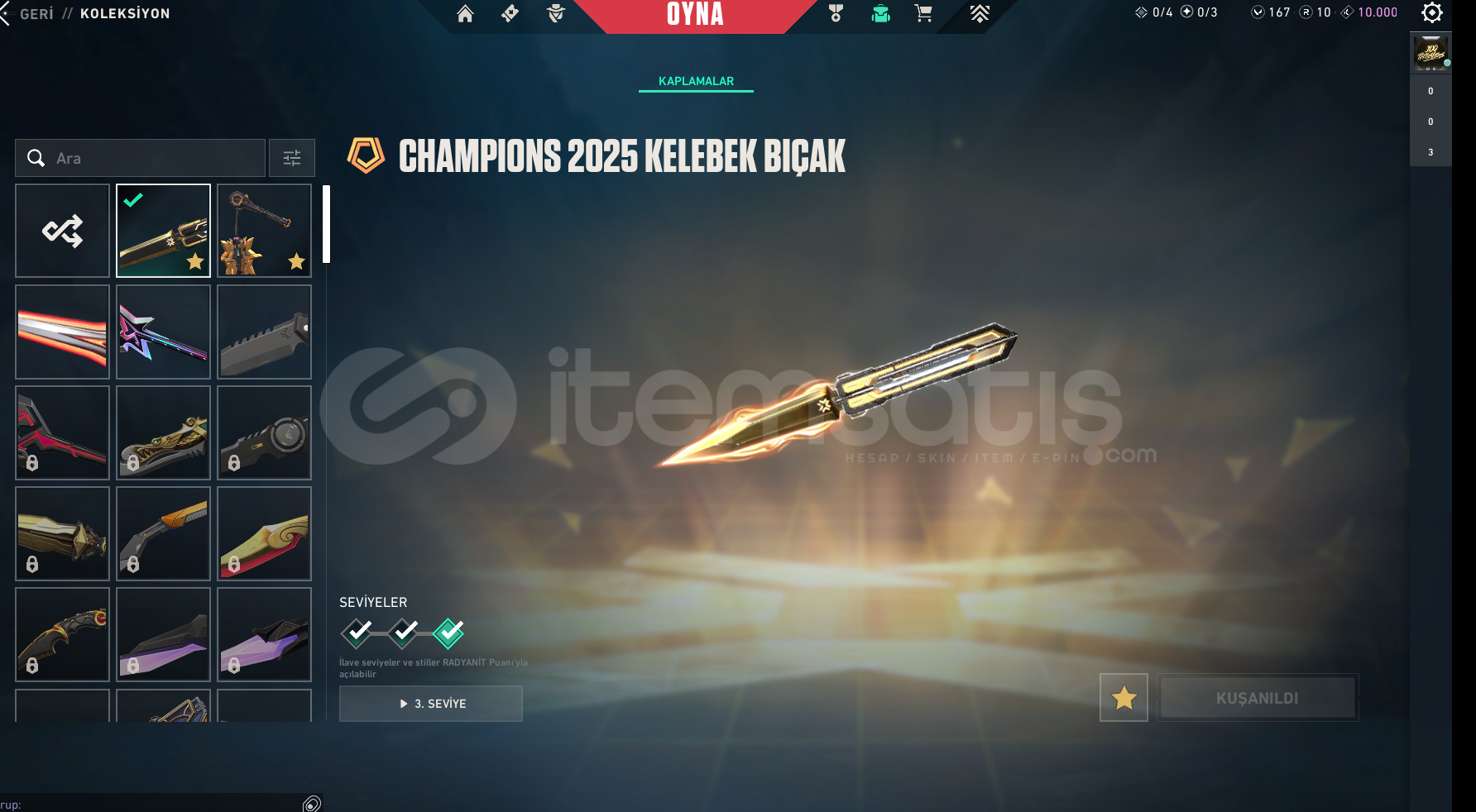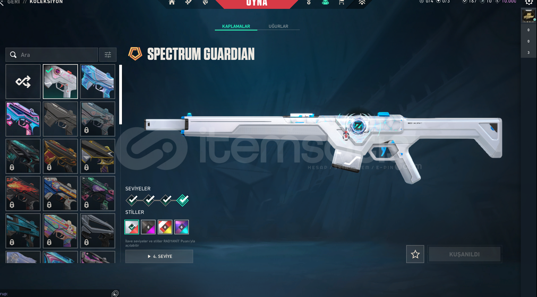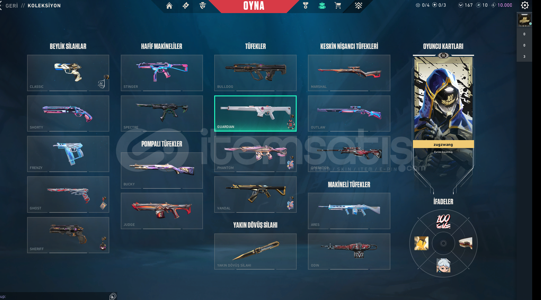 Satmakta olduğum Valorant hesabı özenle kullanılmış olup birçok kaliteli ve nadir skin barındırmaktadır. Hesabın mevcut rütbesi Altın seviyesindedir.