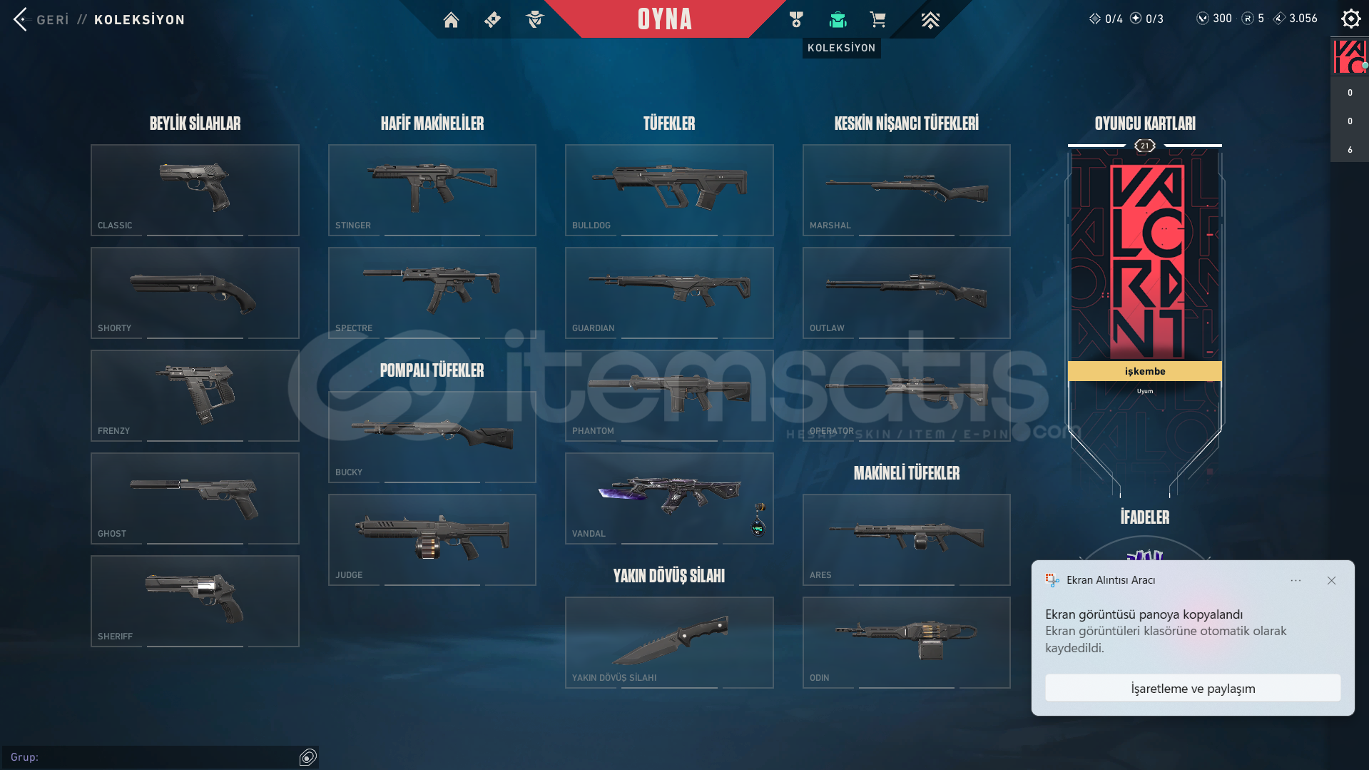 VALORANT HESABI.İÇİNDEKİLER YAZILANLARLA BİRE BİR AYNIDIR.KAYITLI ÜLKE: TRSUNUCU: TRRANK: BRONZ 1SKİNLER: AEMONDIR VANDAL