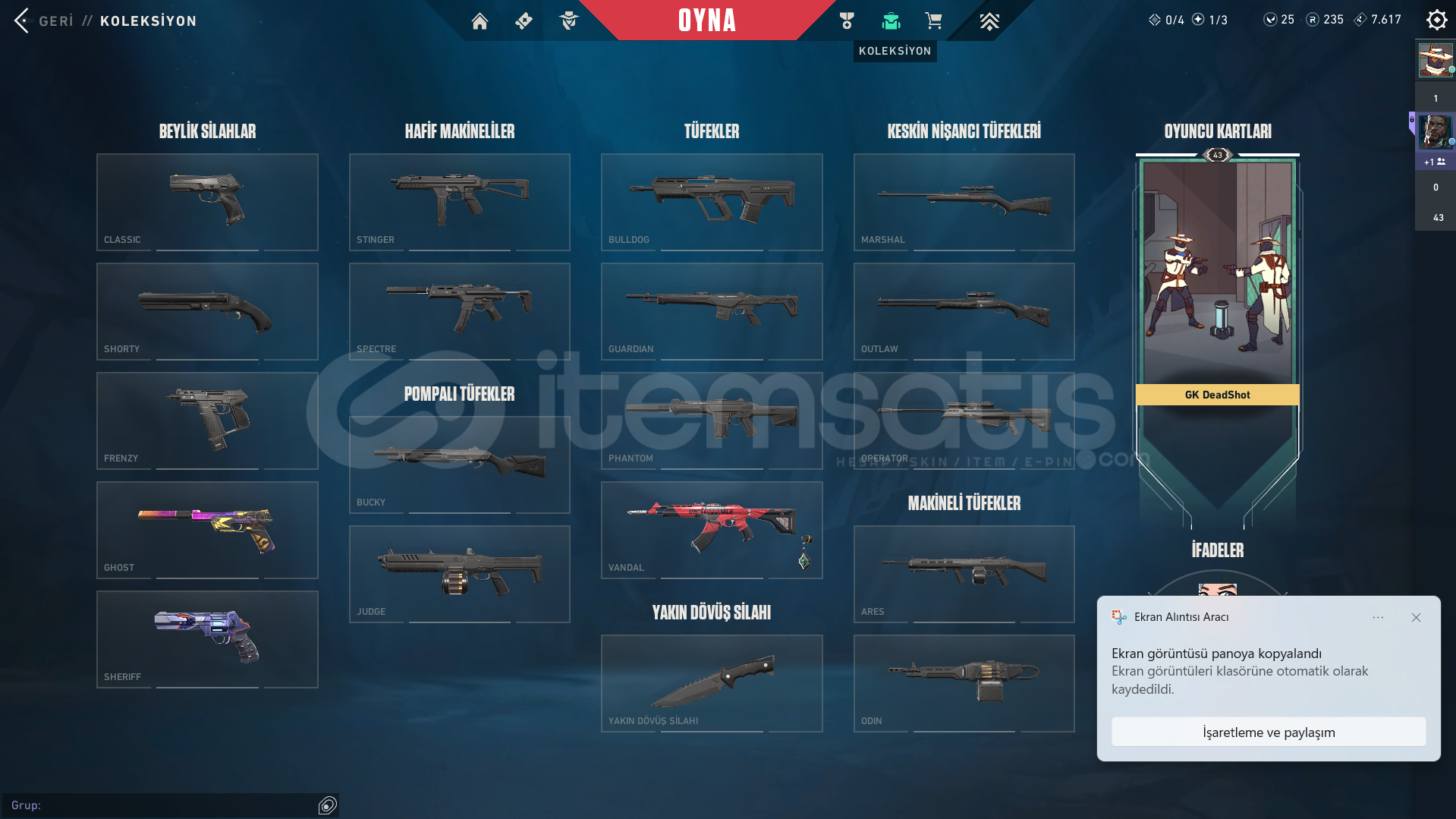 VALORANT HESABI.İÇİNDEKİLER YAZILANLARLA BİRE BİR AYNIDIR.KAYITLI ÜLKE: TRSUNUCU: TRRANK: PLATİN 3SKİNLER: EGO VANDAL
