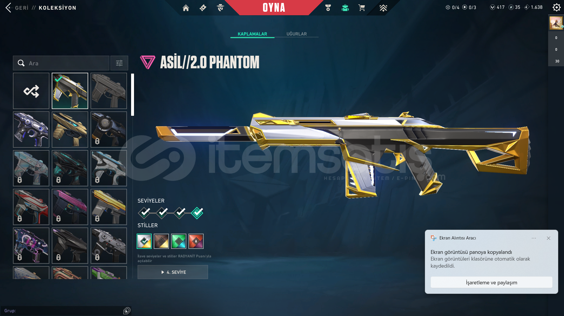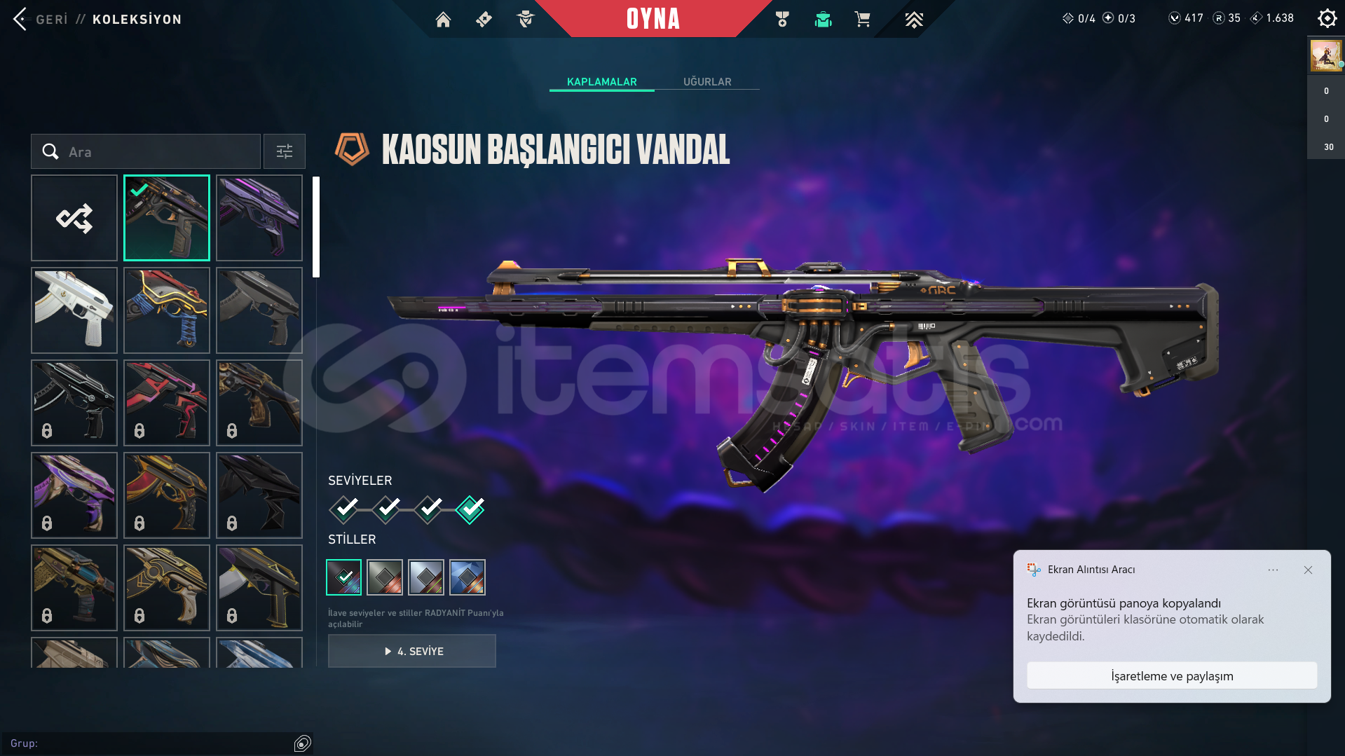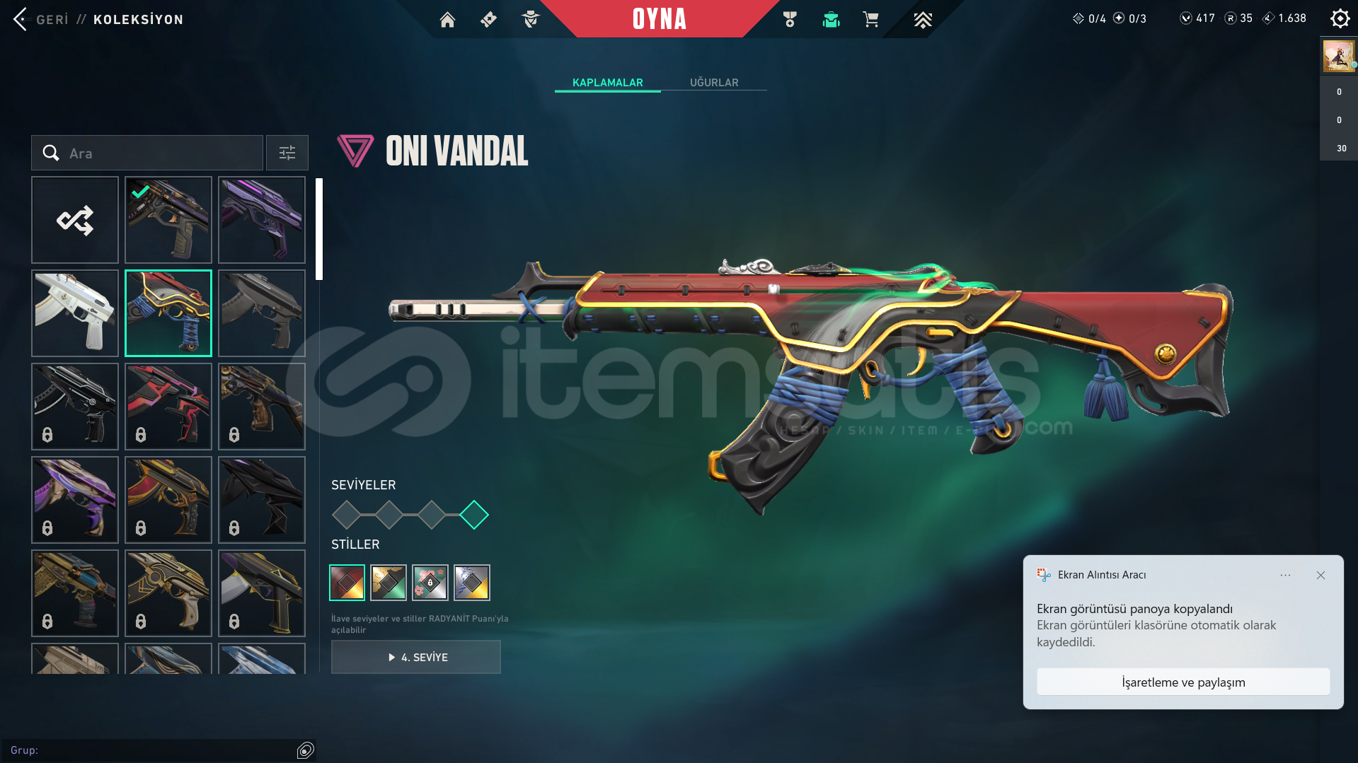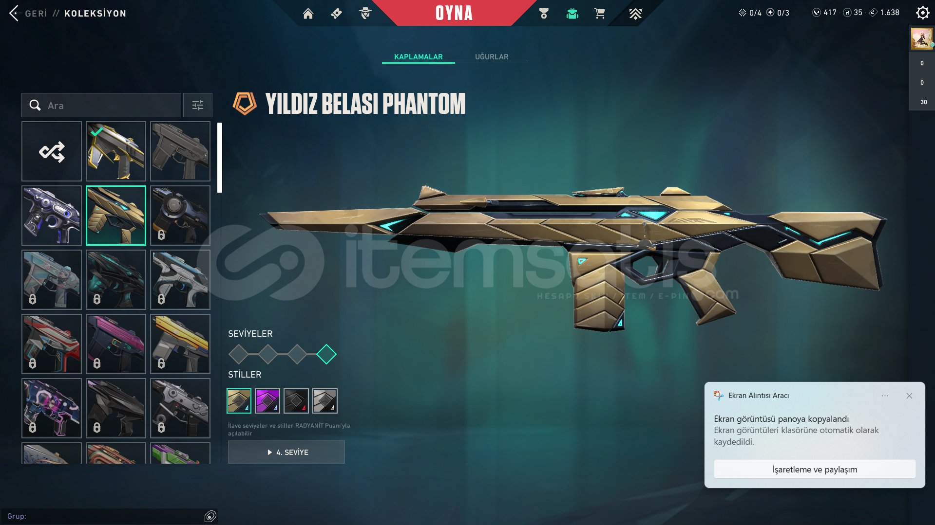 SKİNLER: EXO KAOS NEPTÜN ONİ VANDAL ASİL YILDIZ BELASI PHANTOM YILDIZ BELASI OPERATOR ULUPENÇE GHOST UZAYLI AVCISI BIÇAK UZAY GEÇİDİ BIÇAKLARI