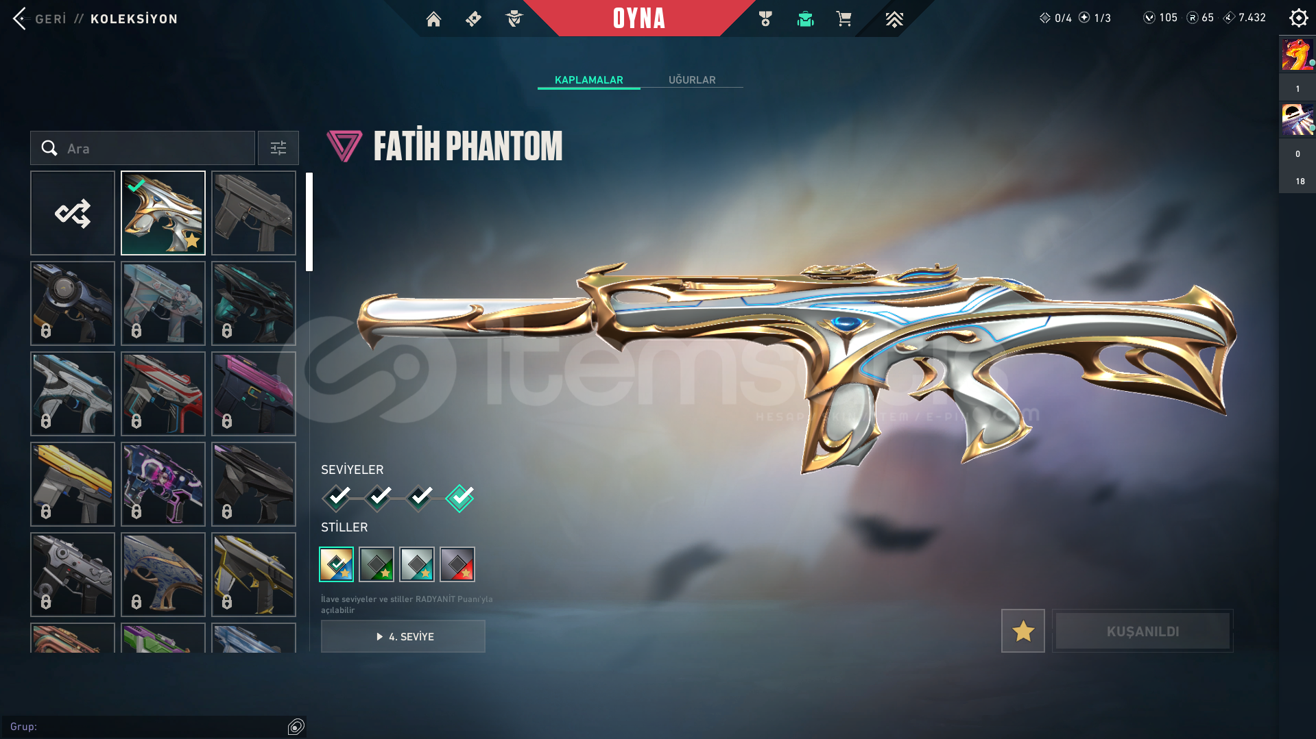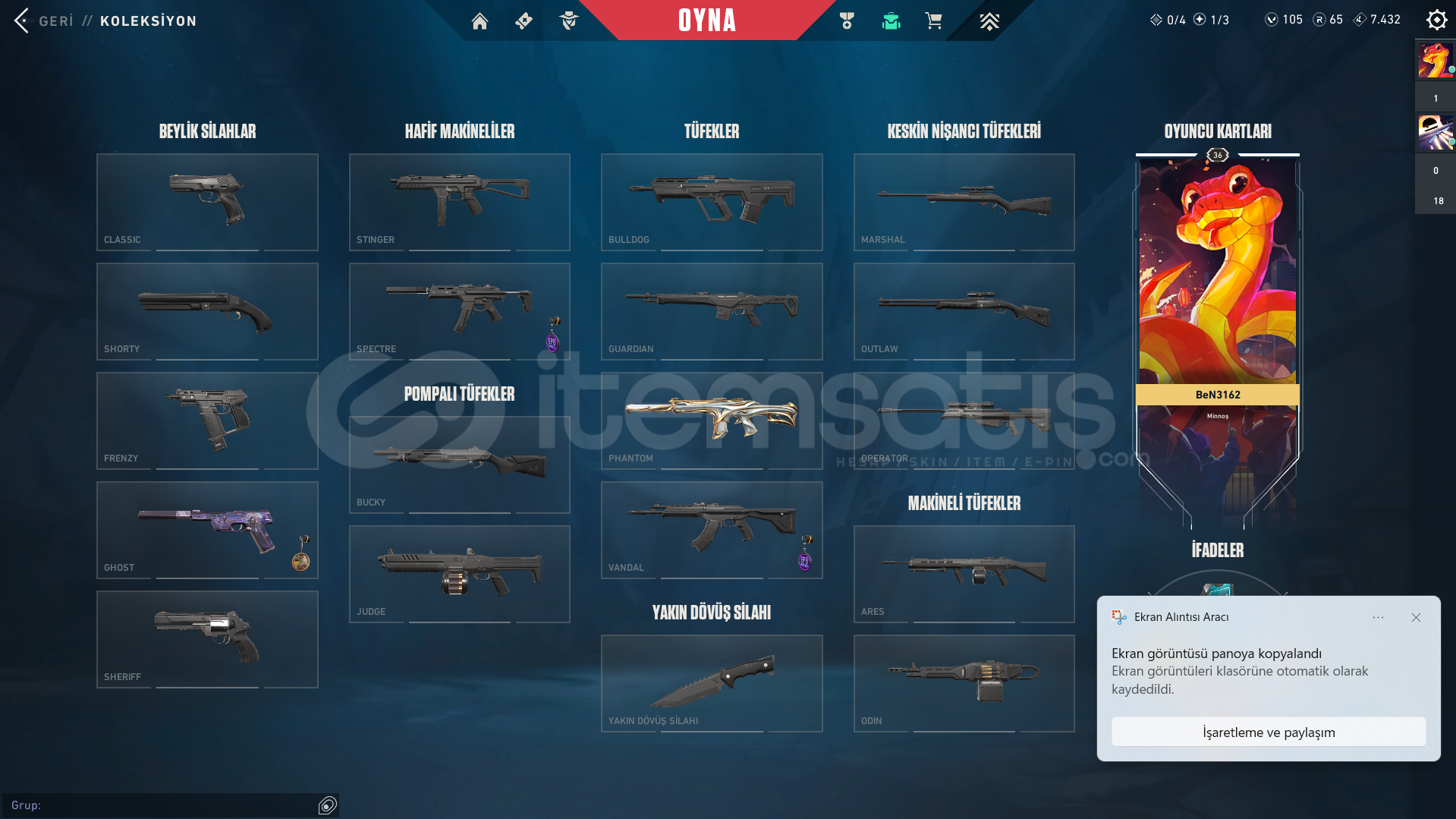 VALORANT HESABI.İÇİNDEKİLER YAZILANLARLA BİRE BİR AYNIDIR.KAYITLI ÜLKE: TRSUNUCU: TRRANK: DEMİR 2SKİNLER: FATİH PHANTOM