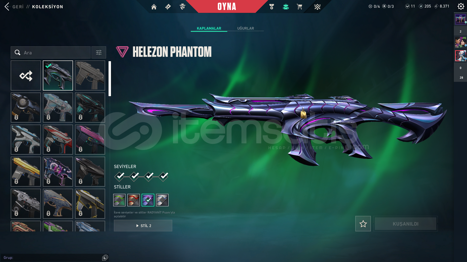 VALORANT HESABI.İÇİNDEKİLER YAZILANLARLA BİRE BİR AYNIDIR.KAYITLI ÜLKE: TRSUNUCU: TRRANK: BRONZ 1SKİNLER: HELEZON PHANTOM