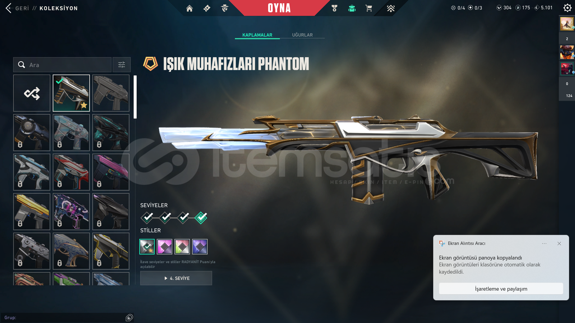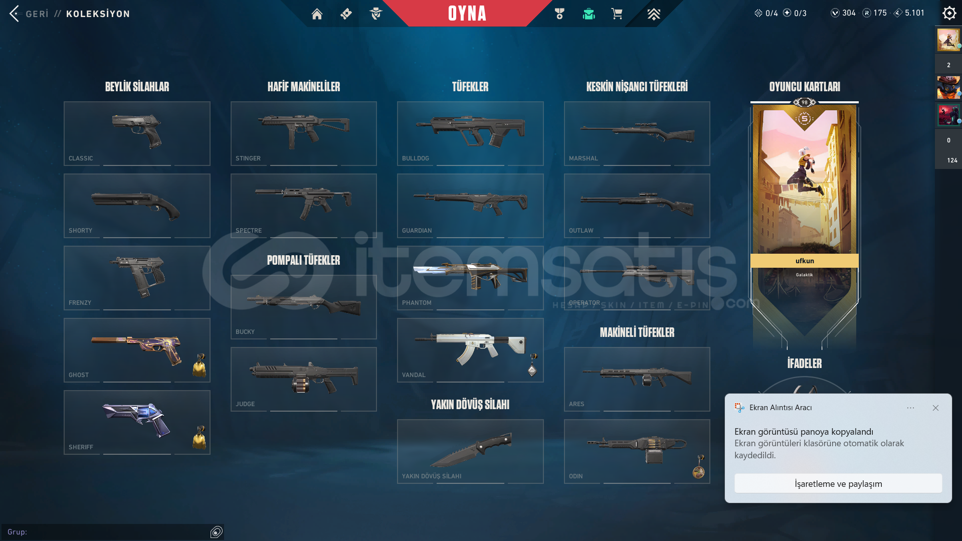 VALORANT HESABI.İÇİNDEKİLER YAZILANLARLA BİRE BİR AYNIDIR.KAYITLI ÜLKE: TRSUNUCU: TRRANK: DEMİR 3SKİNLER: NEPTÜN VANDAL IŞIK MUHAFIZI VANDAL