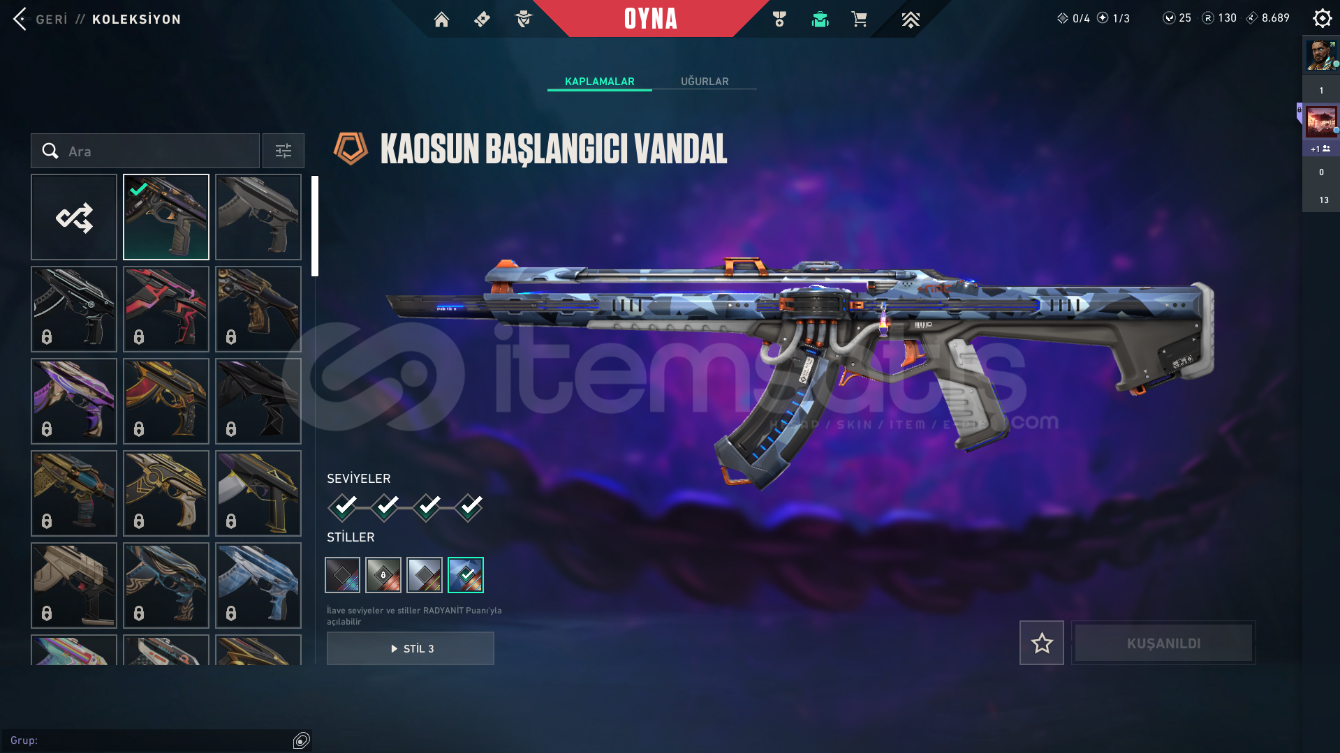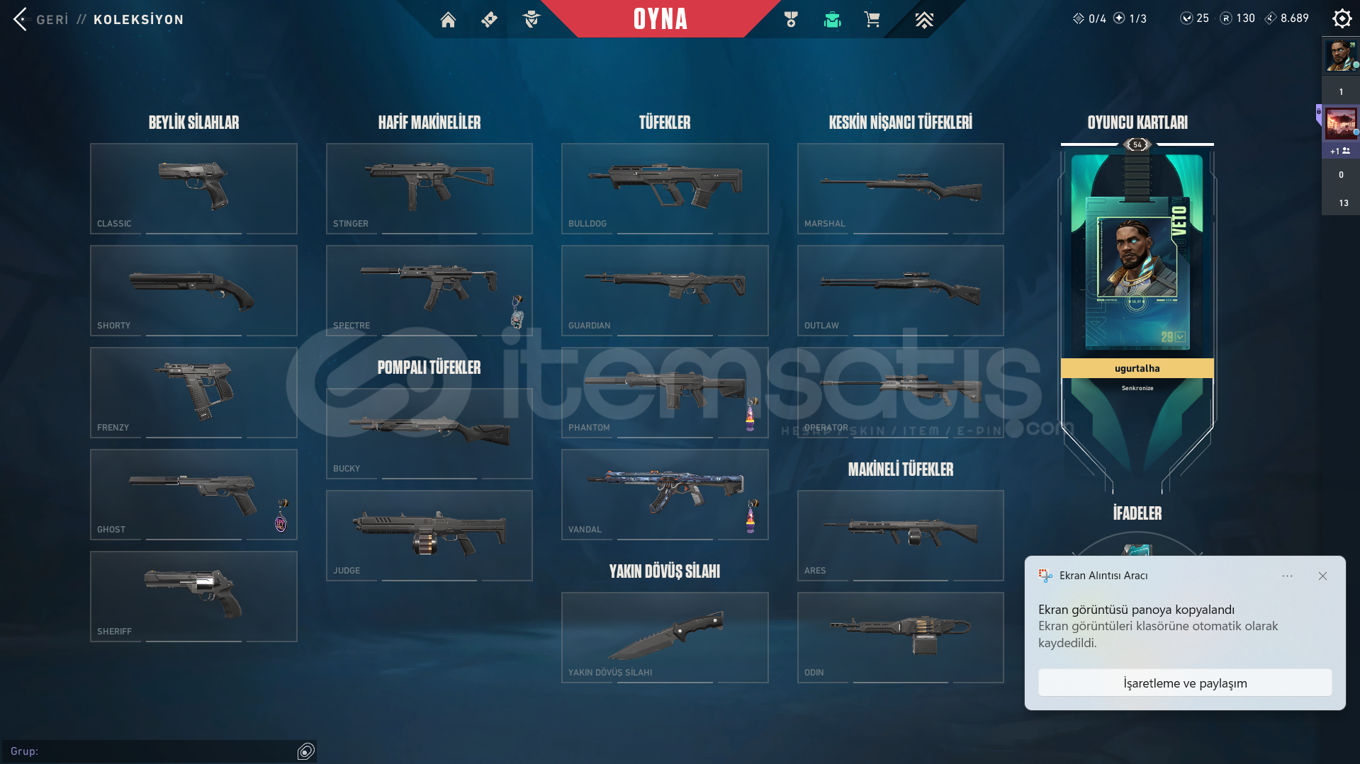 VALORANT HESABI.İÇİNDEKİLER YAZILANLARLA BİRE BİR AYNIDIR.KAYITLI ÜLKE: TRSUNUCU: TRRANK: BRONZ 2SKİNLER: KAOS VANDAL