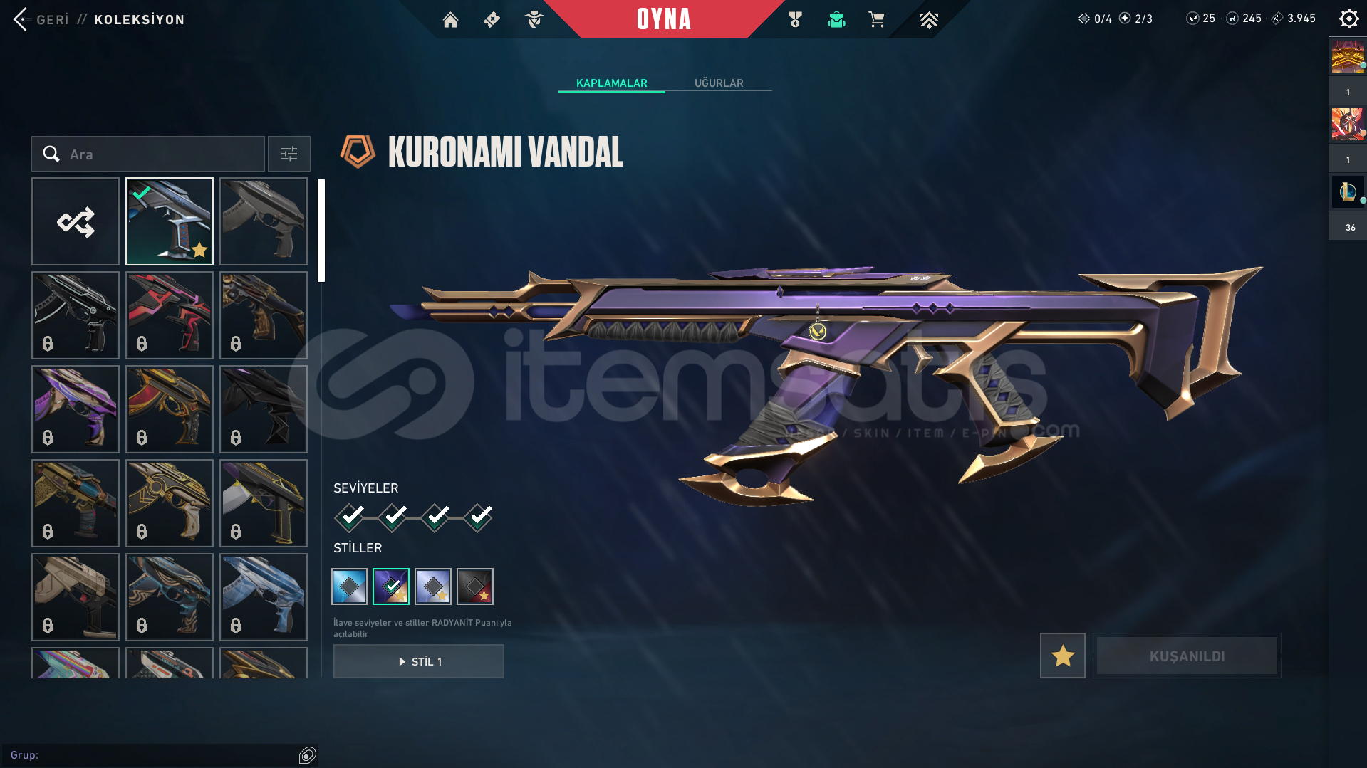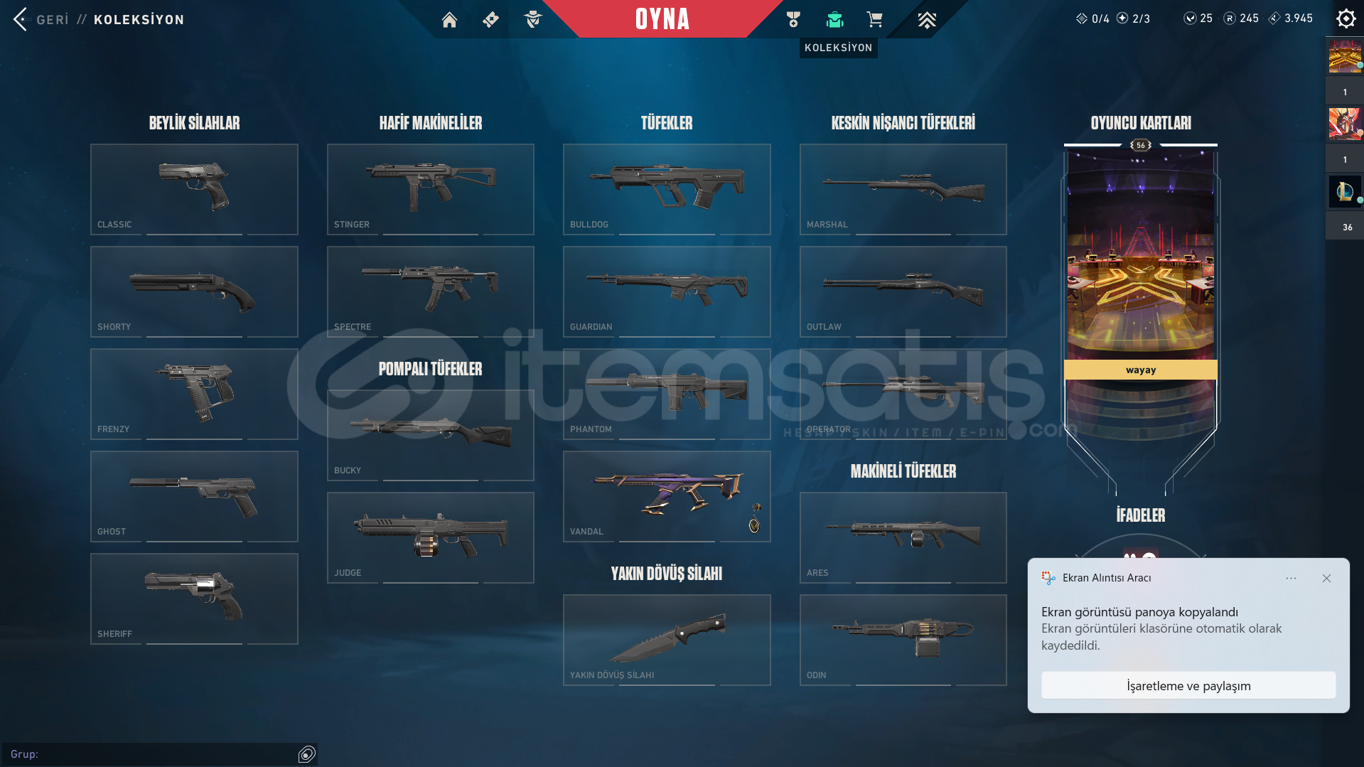 VALORANT HESABI.İÇİNDEKİLER YAZILANLARLA BİRE BİR AYNIDIR.KAYITLI ÜLKE: TRSUNUCU: TRRANK: BRONZ 1SKİNLER: KURANOMİ VANDAL