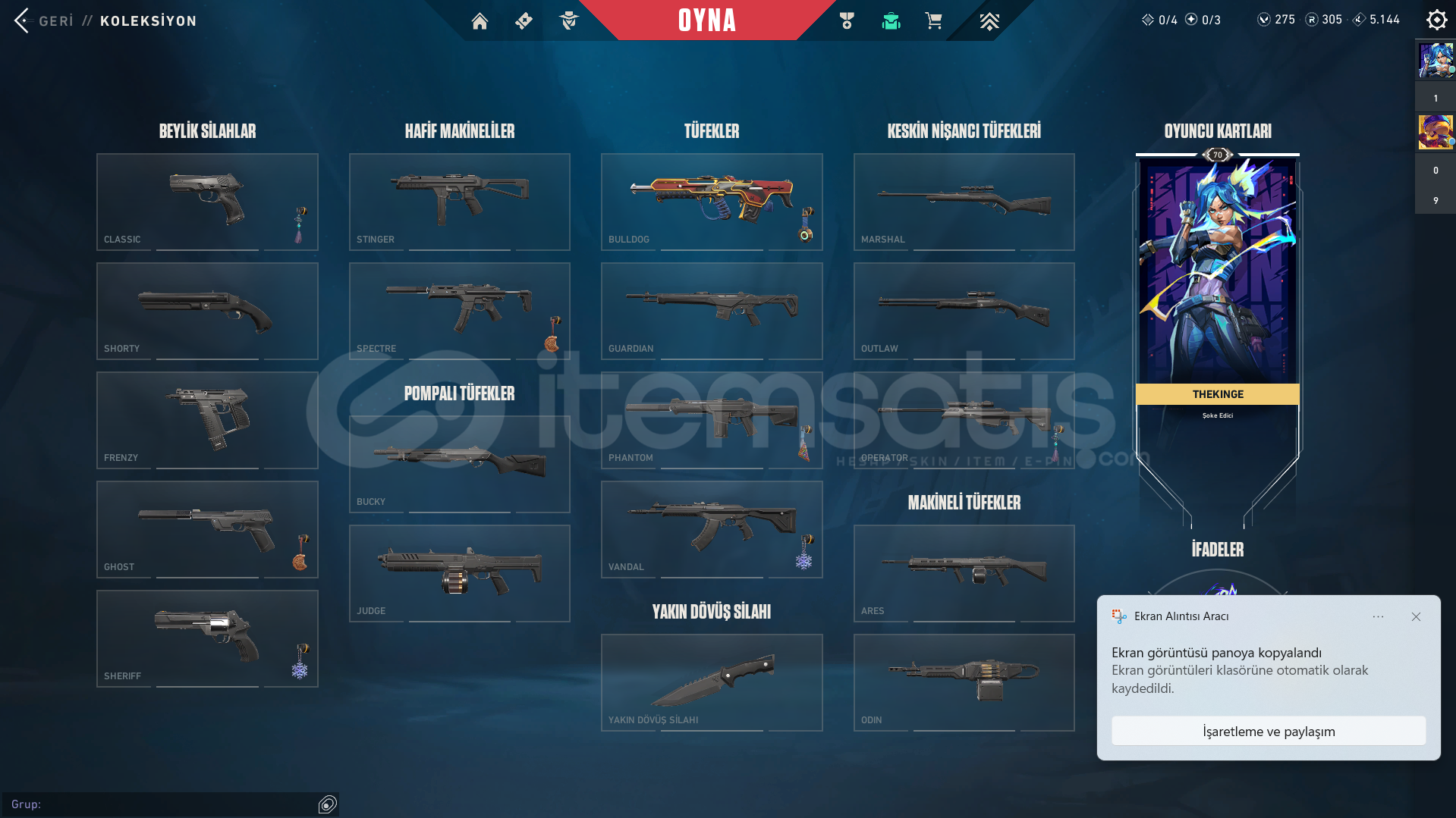 VALORANT HESABI.İÇİNDEKİLER YAZILANLARLA BİRE BİR AYNIDIR.KAYITLI ÜLKE: TRSUNUCU: TRRANK: BRONZ 2SKİNLER: ONİ BULLDOG