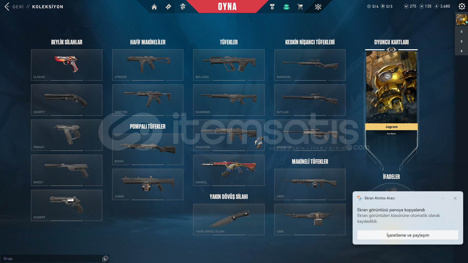 VALORANT HESABI.İÇİNDEKİLER YAZILANLARLA BİRE BİR AYNIDIR.KAYITLI ÜLKE: TRSUNUCU: TRRANK: BRONZ 1SKİNLER: ONİ VANDAL