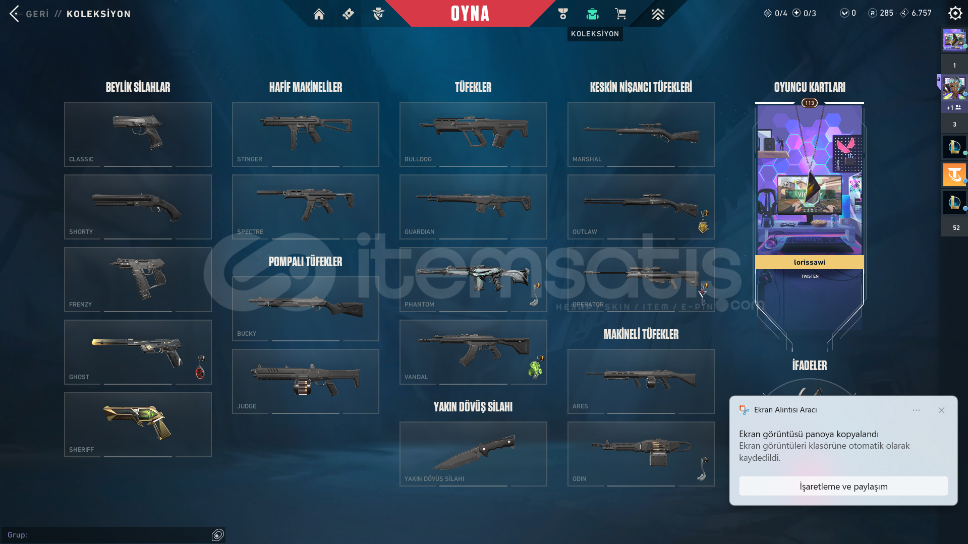 VALORANT HESABI.İÇİNDEKİLER YAZILANLARLA BİRE BİR AYNIDIR.KAYITLI ÜLKE: TRSUNUCU: TRRANK: DERECESİZSKİNLER: YAĞMACI PHANTOM
