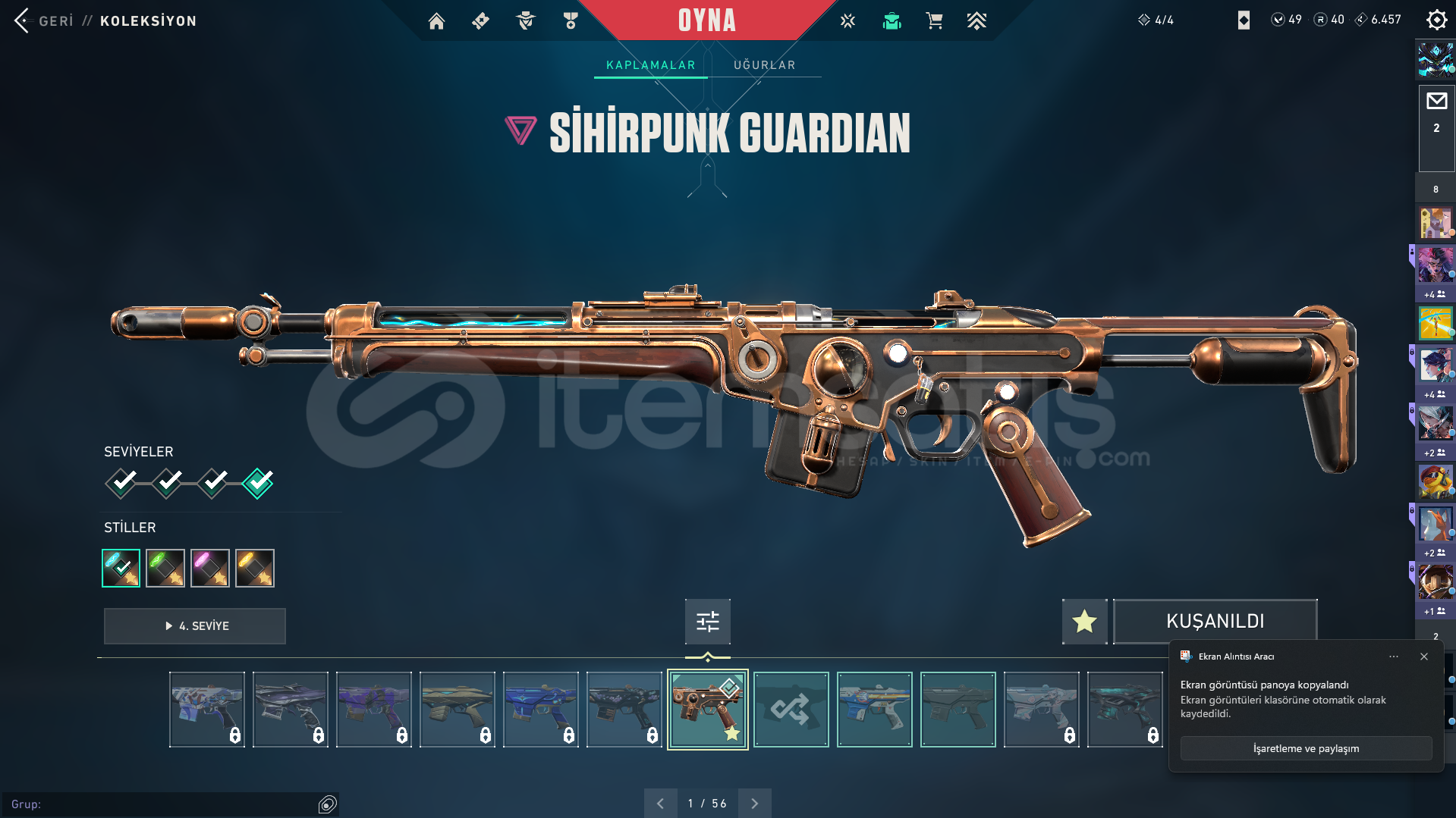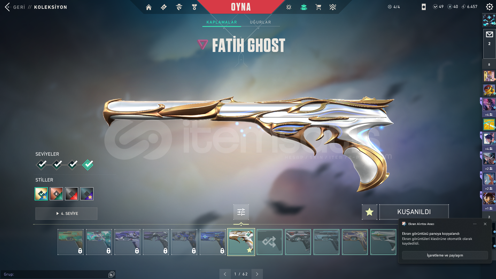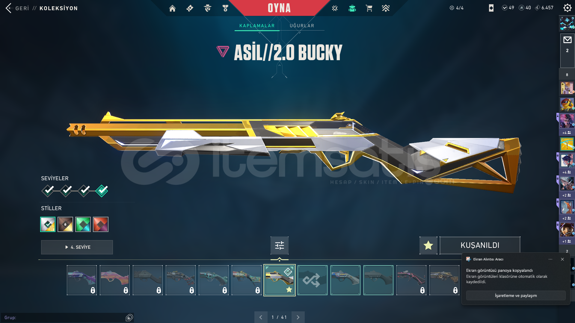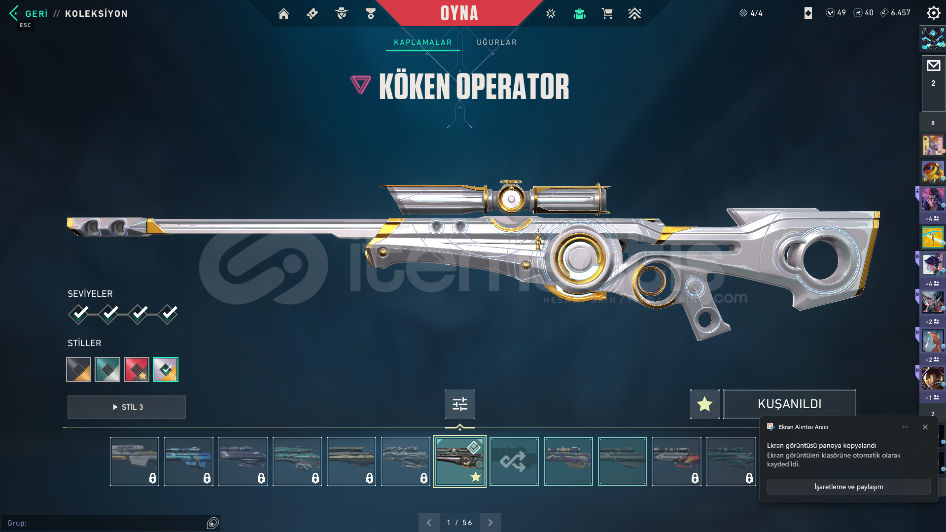 ✅ Mail: Mail değişimi yapılacaktır. ✅ Sunucu: Türkiye ✅ Level: 205 ✅ Rank: Gold 1 ✅ Toplam Skin: 39 ✅ Knife / Bıçak Sayısı: 2 ✅ Valorant Points (Envanter Değeri): ~20.925 VP ✅ Radiant Points (RP): 40 RP🎯 Öne Çıkan Skinler / KoleksiyonlarKuronami VandalRecon BalisongSentinels of Light VandalIon VandalPrimordium PhantomPrelude to Chaos SheriffPrime//2.0 Odin & BuckyMag...