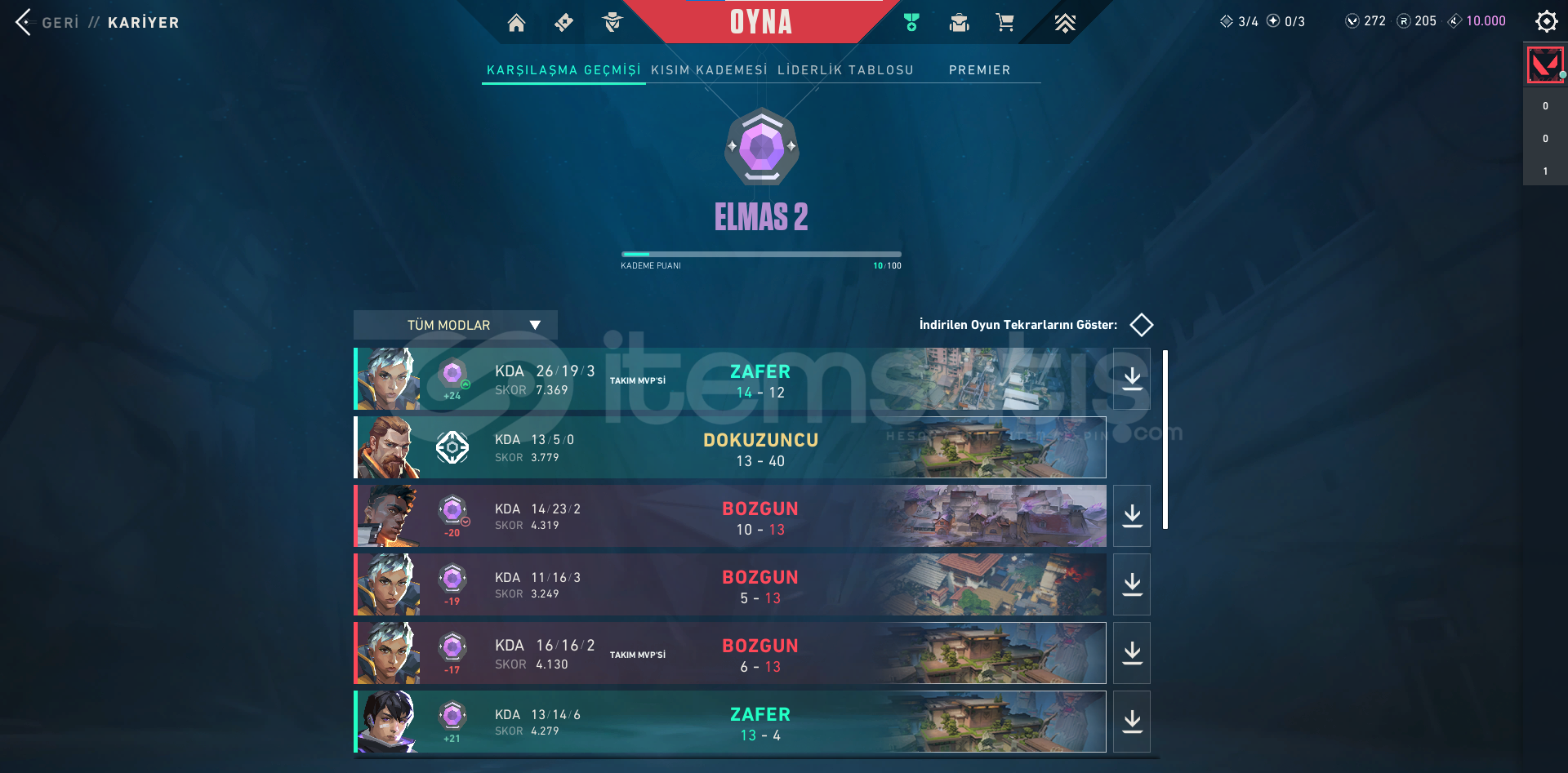 İlk maili bendedir garanti sunmaktayımHesap anlık Dia 2'dirİsim değiştirme hakkı mevcuttur193 leveldir 272 vpsi vardırPazarlık vardırHesaptaki skinler:Yorunun Janti Kelebek TarağıKuronomi Vandalİyon VandalAsil PhantomKış Harikası Vandal