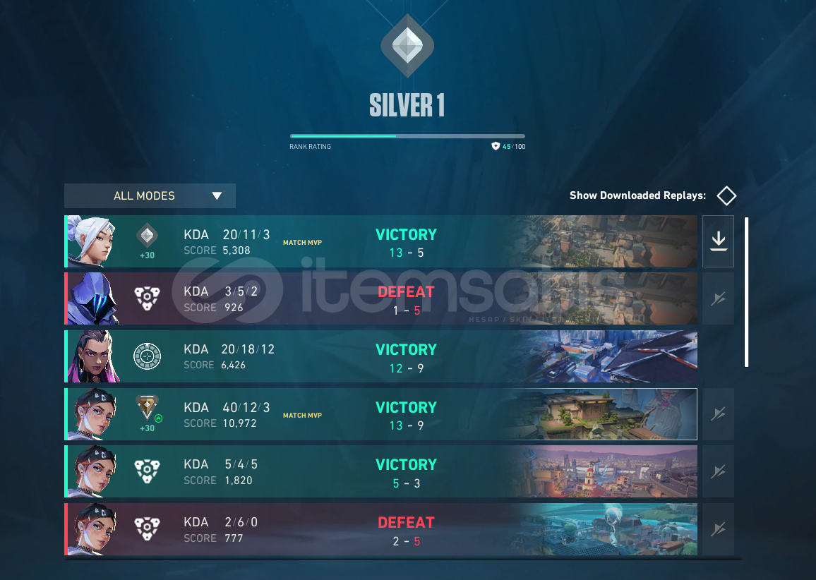 Türkiye Kurulumdur.İstanbul Serveridir.Sıkıntısız teslim edilmeden önce kontrol sağlanmaktadır.Maili Değişir.Aktif rank GÜMÜŞ 1Champions Vandal bulunur.TEL NO BAĞLI DEĞİLDİR.MAİNLEMELİK!275 VP BULUNUR!