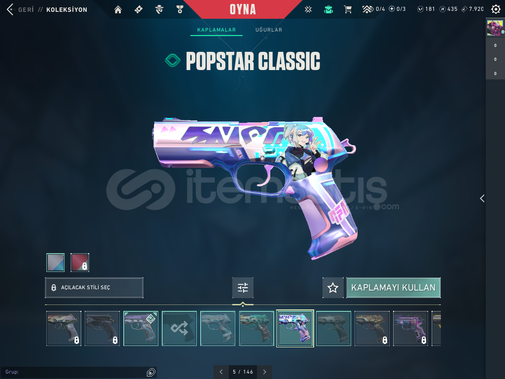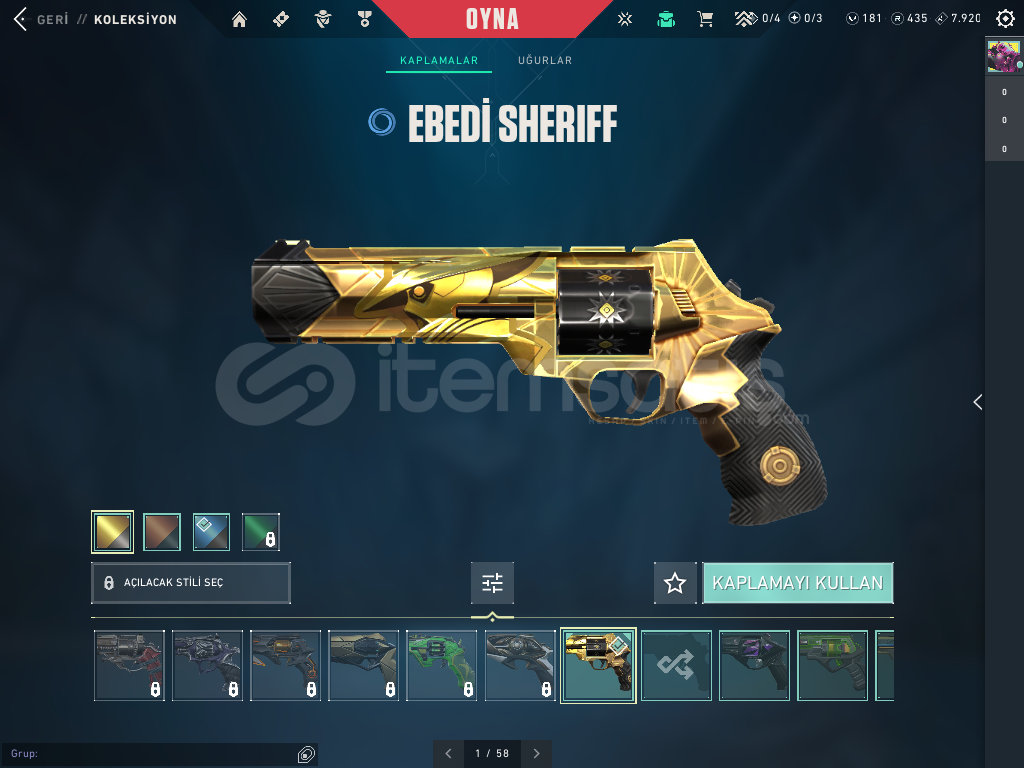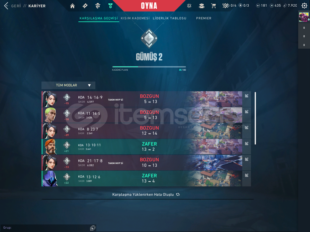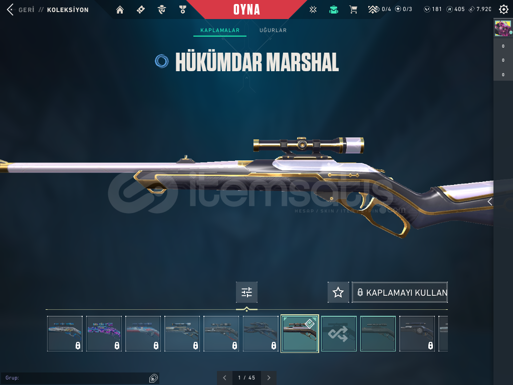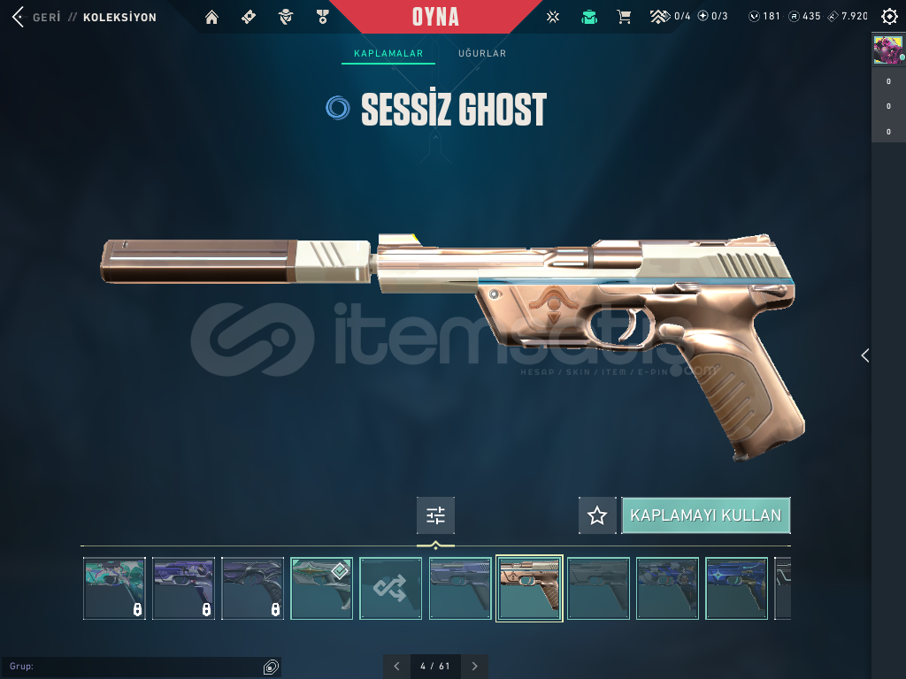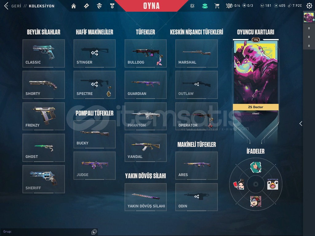 CLASSİC DE 4 SKİNSHORTY DE 2 SKİNFRENZYDE 1 SKİNGHOSTDA 5 SKİNSHERİFFDE 4 SKİNBUCKYDE 1 SKİNJUDGEDE 1 SKİNBULDOGDA 1 SKİNGUARDİANDA 1 SKİNPHONTOMDA 1 SKİN (İYON)VANDALDA 2 SKİN (ASİL VE BATTLE PAS)MARSHAL 1 SKİN (HÜKÜMDAR)OPERETÖR 1 SKİN (BATTLE PAS)ARES 1 SKİN (YAPBOZ)VE HARİKA K/TAK BIÇAĞI HESABIN GÜNCEL RANKI SİLVER 2 DİR.HESABIN DEĞERİ 4000 T...