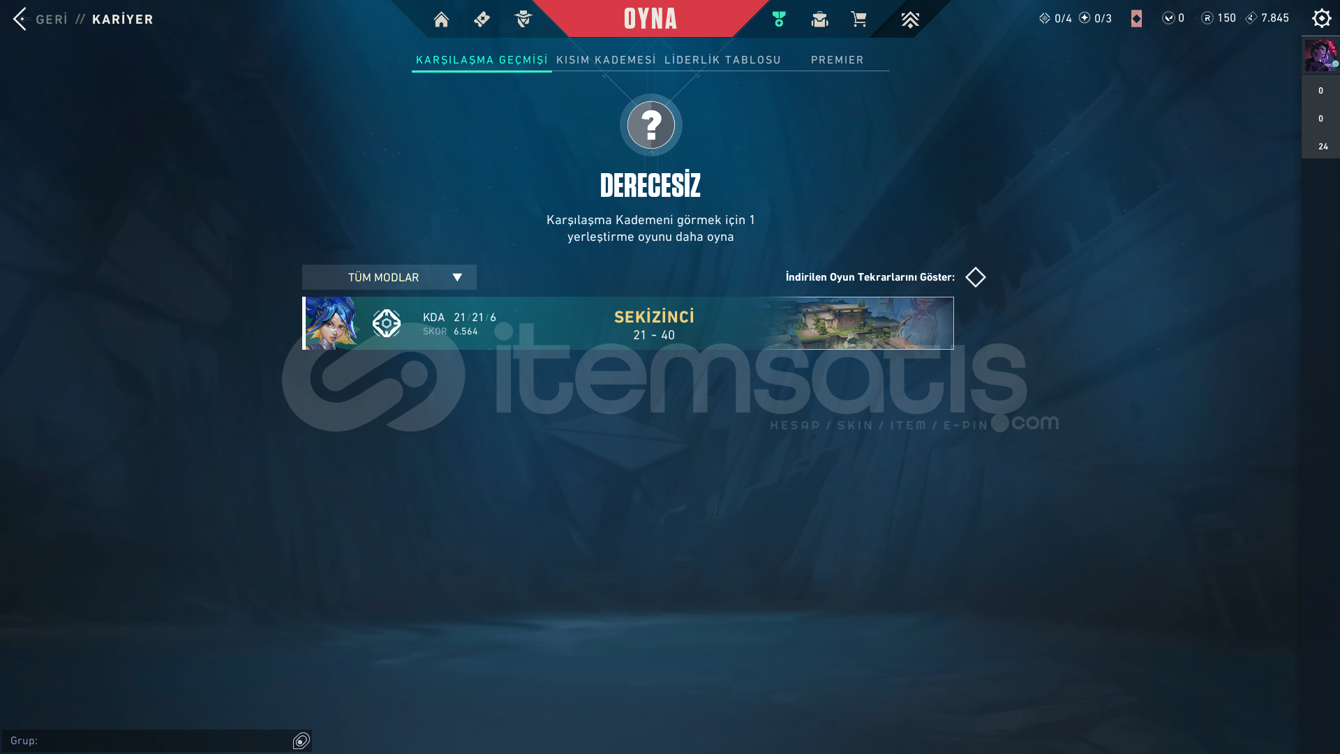 Kademe: Unranked ( 1 Maç Atılınca Demir 3 Olarak Açılacak )