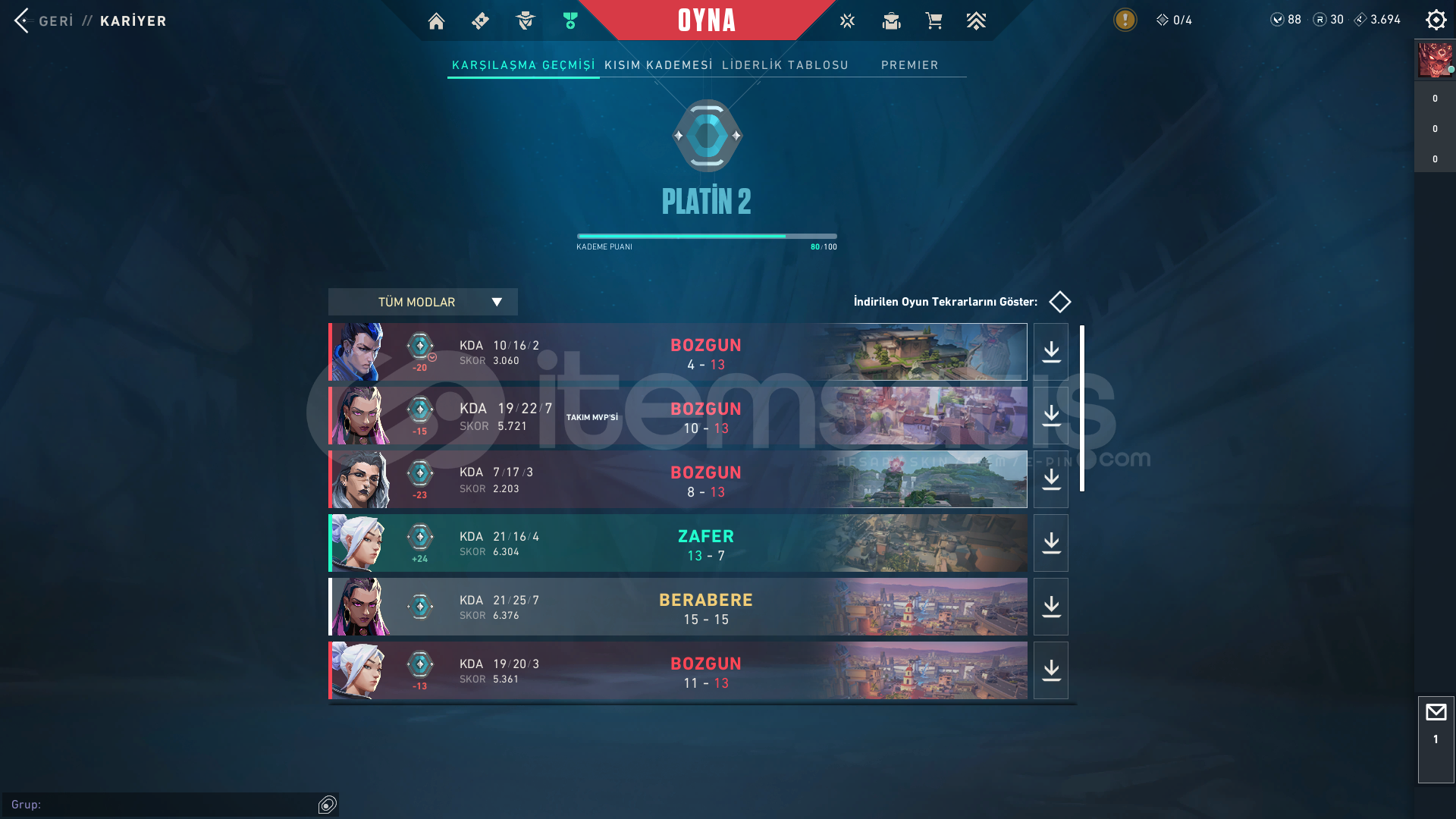 Merhabalar hesap TR sunucudur.Anında teslim edilecektir.Hesap tamamen mailli ve doğrulamalı bir şekilde teslim edilecektir. Bu da demek oluyor ki hesabın hem e-posta kontrolü hem de Riot Games’e ait güvenlik adımları sizin kontrolünüze geçecektir. Satın alma işlemi tamamlandığında sistem bana anlık SMS bildirimi gönderir ve bu sayede hemen siteye bağlanarak sizinle iletişime geçerim. Genellikle birkaç dakika içinde yanıt vererek teslimatı gerçekleştiriyorum. Hesap Özellikleri: E-posta (mail) tamamen alıcıya devredilir Hiçbir üçüncü şahısla paylaşılmamış Şüpheli etkinlik, 3. parti yazılım geçmişi yok Teslimat süresi: Ortalama 5–15 dakika İlanla ilgili aklınıza takılan her konuda bana İtemSatış mesaj sistemi üzerinden ulaşabilirsiniz. Tüm sorularınıza içtenlikle yanıt verecek, güvenle alışveriş yapmanız için elimden geleni yapacağım. Satıcı panelimde yer alan satıcı doğrulama rozetim ve önceki ilanlarımdan aldığım olumlu yorumlar, güvenli ticaret konusunda sizlere referans olabilir. Hesap devrinden sonra ihtiyaç duymanız halinde kısa süreli destek vermeye de hazırım. Oyun içindeki bazı ayarlamalar, e-posta onayları ya da güvenlik adımları hakkında takıldığınız yer olursa yazmanız yeterlidir. Temiz, güvenli ve hızlı teslimat garantili Valorant hesabı satın almak istiyorsanız doğru ilandasınız. Siparişinizi oluşturun, birkaç dakika içinde yeni hesabınıza kavuşun! Bu ilanı satın aldığınızda bilmeniz ve yapmanız gerekenler, • Sizlere hesaba giriş kodunuzu gönderdiğimizde hesaba tamamen erişmiş olacaksınız. • Hesaba girdiğiniz zaman lütfen hesabın e-posta adresini ve şifresini değiştirin ayrıca Sosyal Medya bağlantılarını (Google, Facebook vb.) kesin. • Hesabın biletlerini kontrol edin, açık bilet olursa bize bildirin. • VALORANT üzerinden giriş yaptığınızda hesabın tüm arkadaşlarını silin. • Tüm maddelerin satın alındığı andan itibaren yapılması ve ekran kaydı alınması zorunludur, aksi takdirde geri alma işlemleri sizin yaptığınız düşünülür ve para iadesi yapılmaz. • Satışı yapılan ilan aynı satış yerinde satış yapamaz aksi takdirde destek verilmez. Sorumluluk hesapta son satış yapan kullanıcıya aittir. Unutmayın, hesaplar sizden geri alınabilir. Bu durumda hesabın sizden alındığına dair kanıt göstermek zorundasınız. • Sadece VALORANT Destek sitesindeki Bilet mailleri bizler için kanıt sayılır. Mailde sizden Bilet ile geri alındığına dair bir bilgi var ise paranız iade edilir. Aksi takdirde bu işlemi sizin yaptığınız kabul edilir ve paranız iade edilmez. • Hesap sizden geri alındığında bir üstte yazan madde uygulanmalıdır. Uygulanmadığı takdirde sizden geri alınmış olsa bile para iadesi yapılmaz! • Riot Politikalarına aykırı bir durum tespit edilirse iadeniz gerçekleştirilmez! • Bu ilanı satın aldığınızda tüm açıklamayı okumuş ve kabul etmiş sayılırsınız.