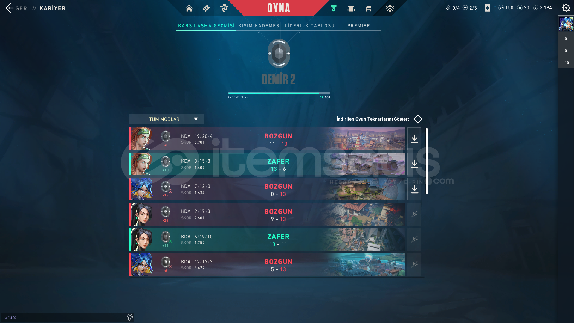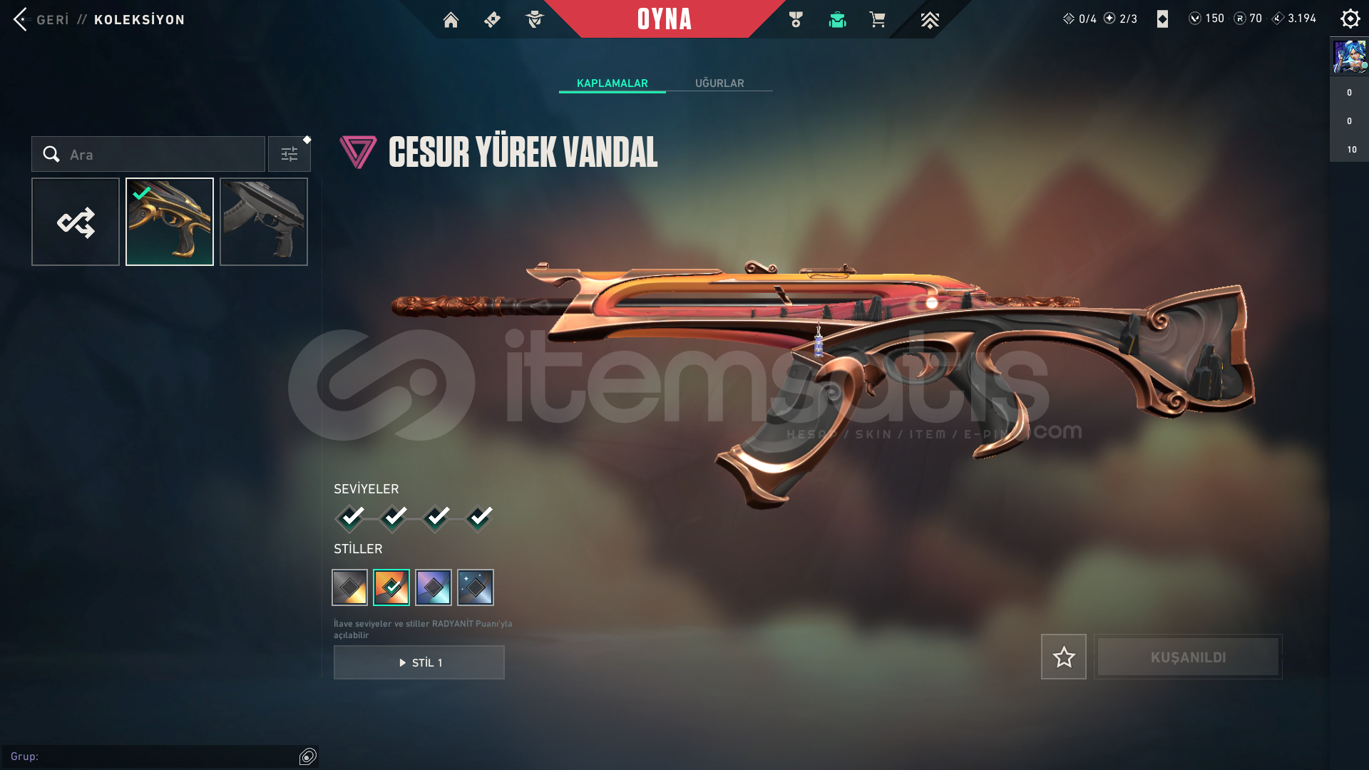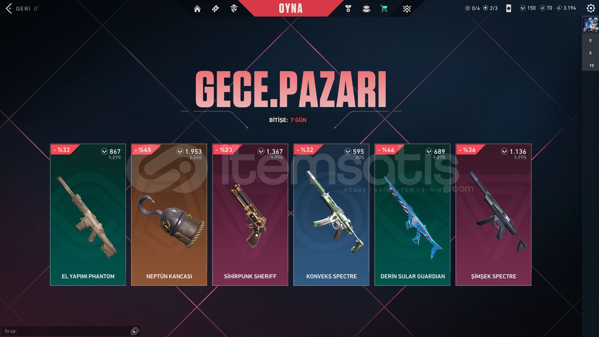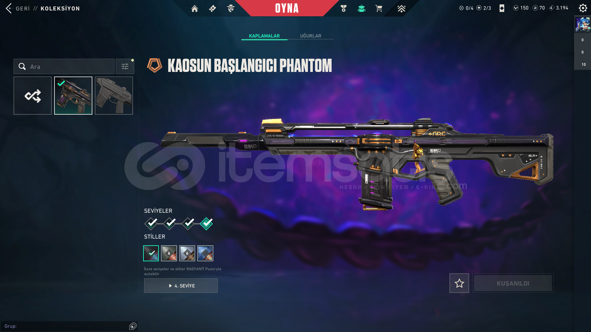 Mail onaysız nedir?Mail onaysız hesaplar, mail adresi henüz doğrulanmamış hesaplardır.Oto teslimat nedir?Ben aktif olmasam bile satın alıp direkt bilgilere erişip tüm bilgileri üstünüze anlık olarak alabilirsiniz.Bölge: TRSeviye: 50Kademe: Demir 2VP: 150Radyanit: 70Skinler;Cesur Yürek VandalKaos Phantomve 1 Adet Battle Pass Skin...Satın alıp t&uu...