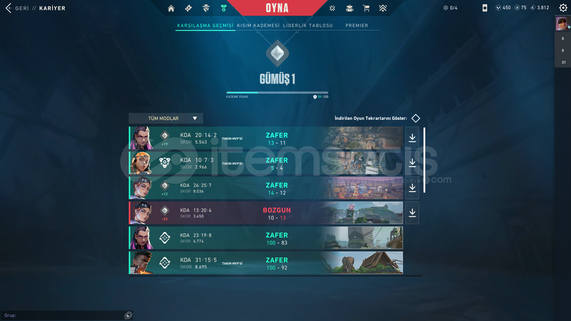 TR + Mail Onaysız + Champ 25 Vandal + Silver 1