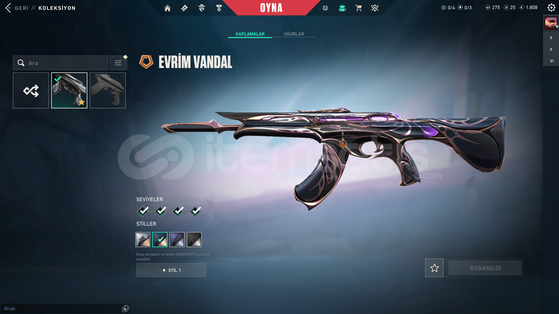 Mail onaysız nedir?Mail onaysız hesaplar, mail adresi henüz doğrulanmamış hesaplardır.Oto teslimat nedir?Ben aktif olmasam bile satın alıp direkt bilgilere erişip tüm bilgileri üstünüze anlık olarak alabilirsiniz.Bölge: TRSeviye: 32Kademe: Bronz 2VP: 275Radyanit: 25Skinler;Evrim VandalSatın alıp tüm işlemleri bitirip hesabı üst&uum...
