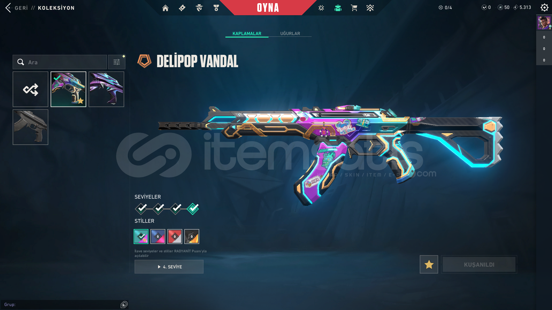 Mail onaysız nedir?Mail onaysız hesaplar, mail adresi henüz doğrulanmamış hesaplardır.Oto teslimat nedir?Ben aktif olmasam bile satın alıp direkt bilgilere erişip tüm bilgileri üstünüze anlık olarak alabilirsiniz.Bölge: TRSeviye: 26Kademe: Demir 2VP: 0Radyanit: 50Skinler;Delipop VandalPonçik Ecel PhantomEvori GhostUlupençe BıçakYoru'nun Janti ...